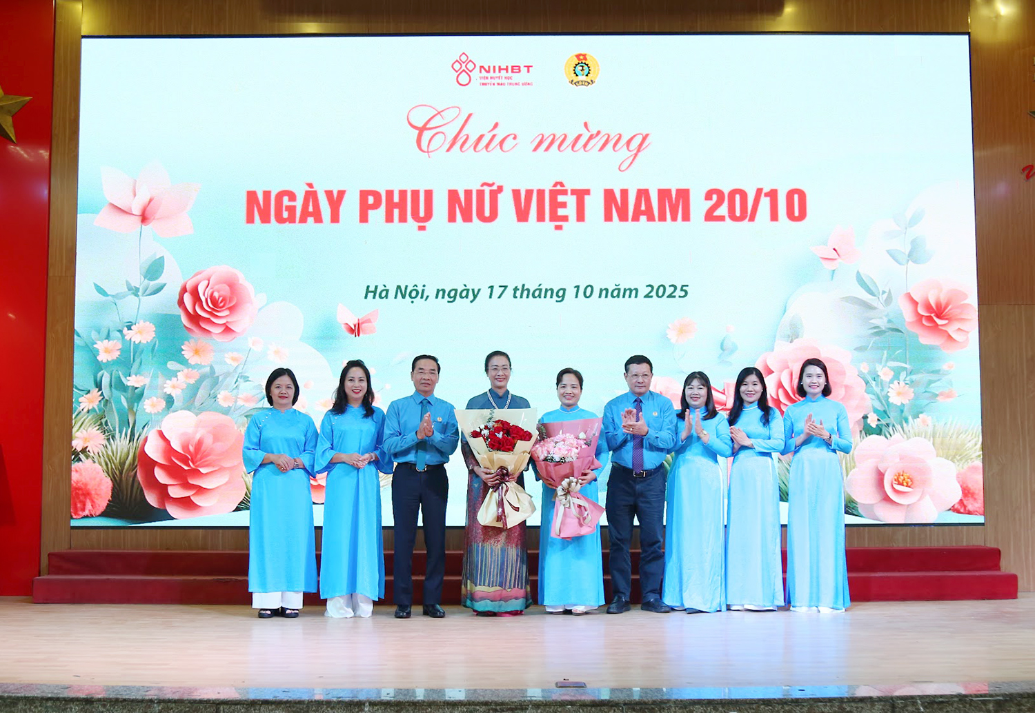 03 nữ cán bộ của Viện gồm: Đồng chí Nguyễn Thị Quỳnh Chi, Ủy viên Ban Chấp hành Công đoàn Viện, Trưởng phòng Quản trị; đồng chí Hoàng Nhật Lệ, Ủy viên Ban Chấp hành Công đoàn Viện, Trưởng khoa Lưu trữ và phân phối máu; đồng chí Đỗ Thị Hiền, Ủy viên Ban Chấp hành Công đoàn, Trưởng ban Nữ công Viện, Phó Trưởng khoa Điều chế các thành phần máu là điển hình trong phong trào thi đua “Giỏi việc nước, đảm việc nhà” ngành Y tế, giai đoạn 2020 – 2025. Ảnh: Công đoàn Y tế Việt Nam cung cấp.