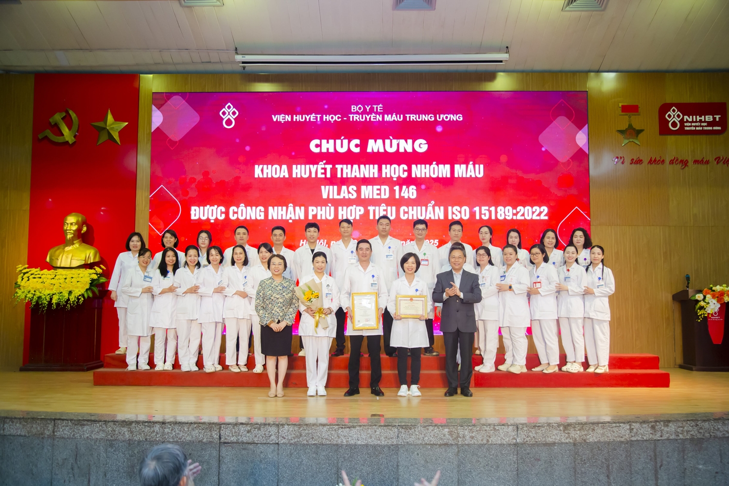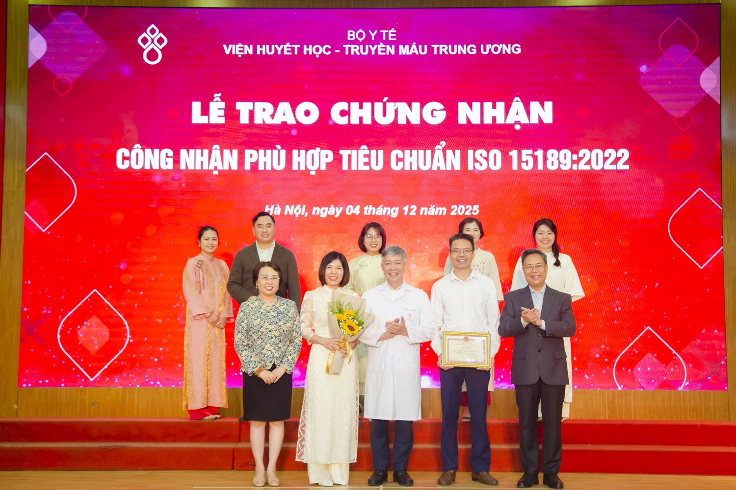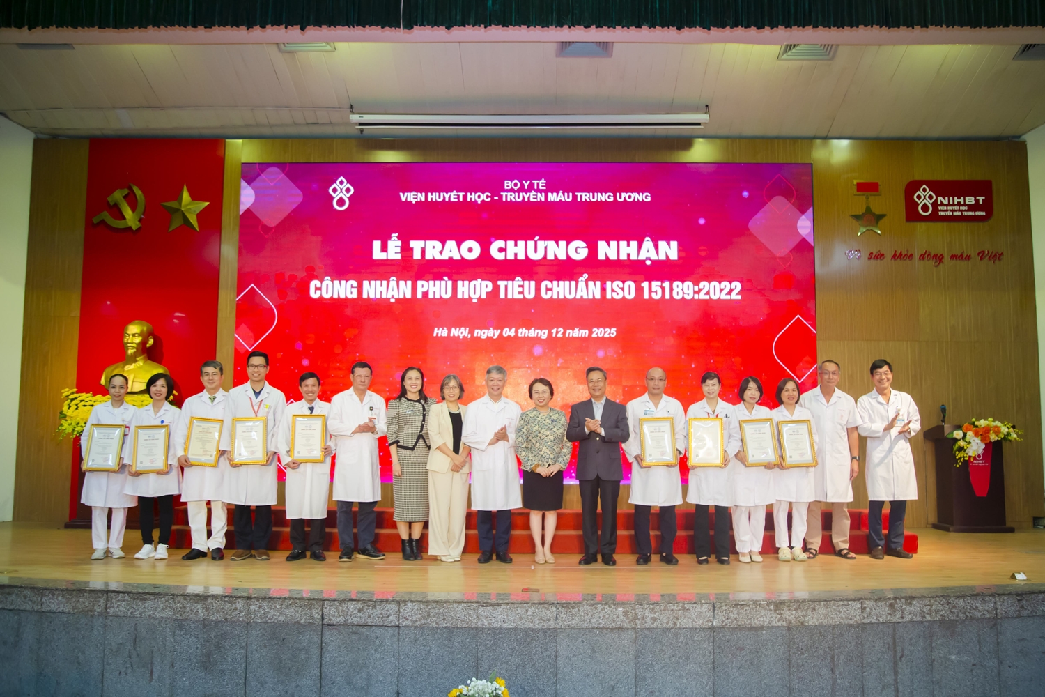Ngày 04/12/2025, Viện Huyết học – Truyền máu Trung ương tổ chức lễ trao chứng chỉ công nhận phòng xét nghiệm phù hợp tiêu chuẩn ISO 15189:2022 cho 9 đơn vị xét nghiệm.