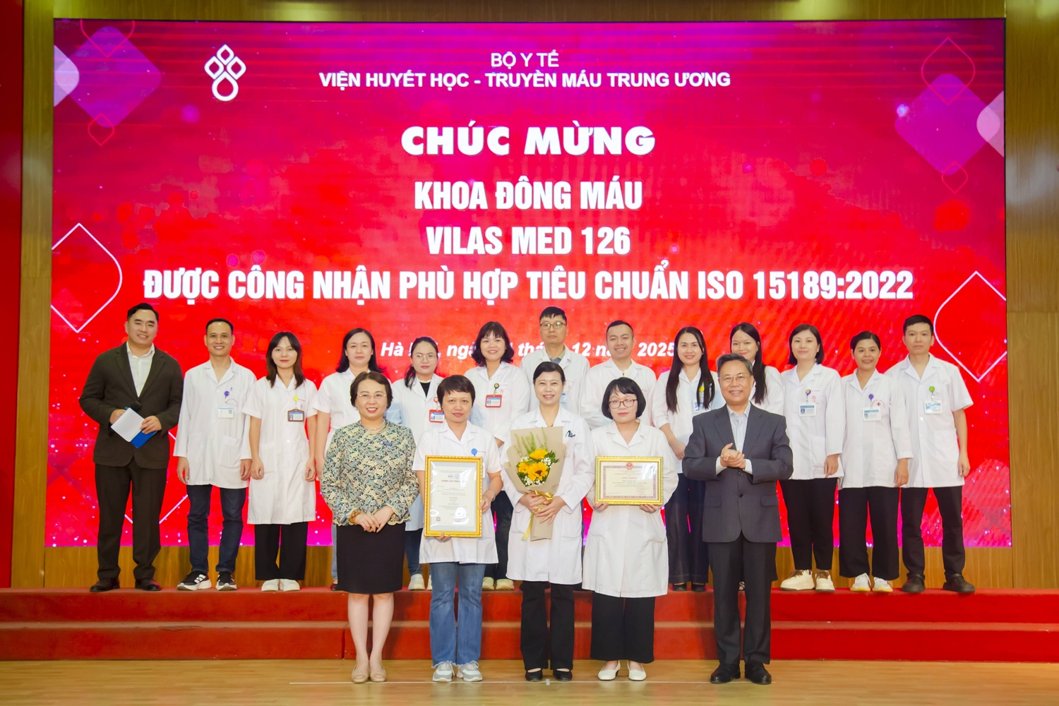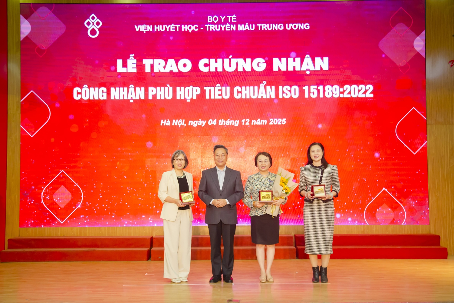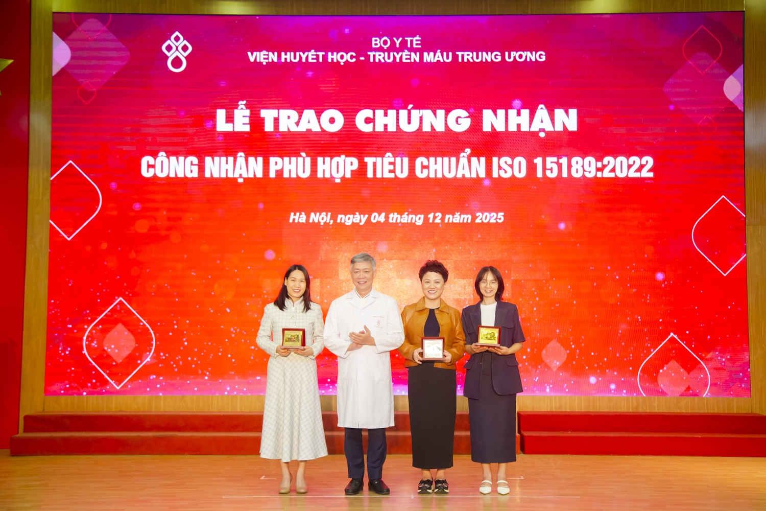 Ngày 04/12/2025, Viện Huyết học – Truyền máu Trung ương tổ chức lễ trao chứng chỉ công nhận phòng xét nghiệm phù hợp tiêu chuẩn ISO 15189:2022 cho 9 đơn vị xét nghiệm.