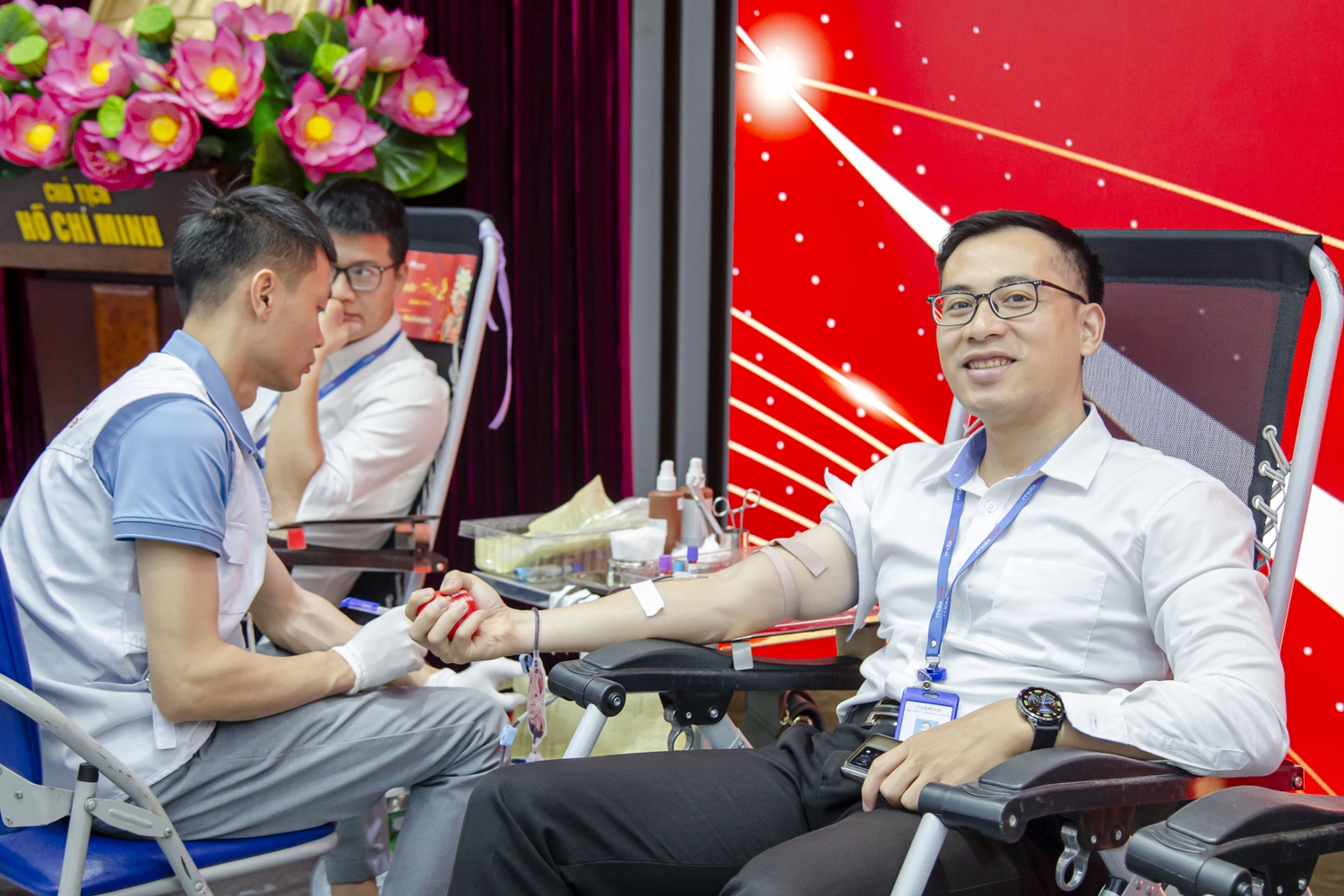 Anh Lê Văn Hải (Trung tâm Kinh doanh, MobiFone Hưng Yên) cùng các đồng nghiệp xuất phát từ Hưng Yên lúc 6 giờ 30 phút sáng. Họ khoác trên mình chiếc áo xanh thanh niên, mang tinh thần nhiệt huyết, quyết tâm hoàn thành các mục tiêu hiến máu vì người bệnh.