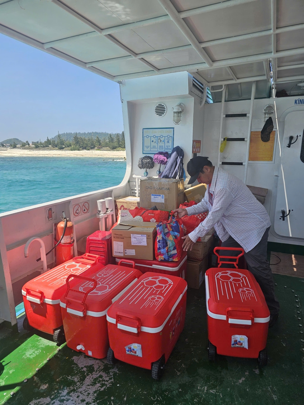 Máu sau khi được tiếp nhận tại đảo được vận chuyển về đất liền.