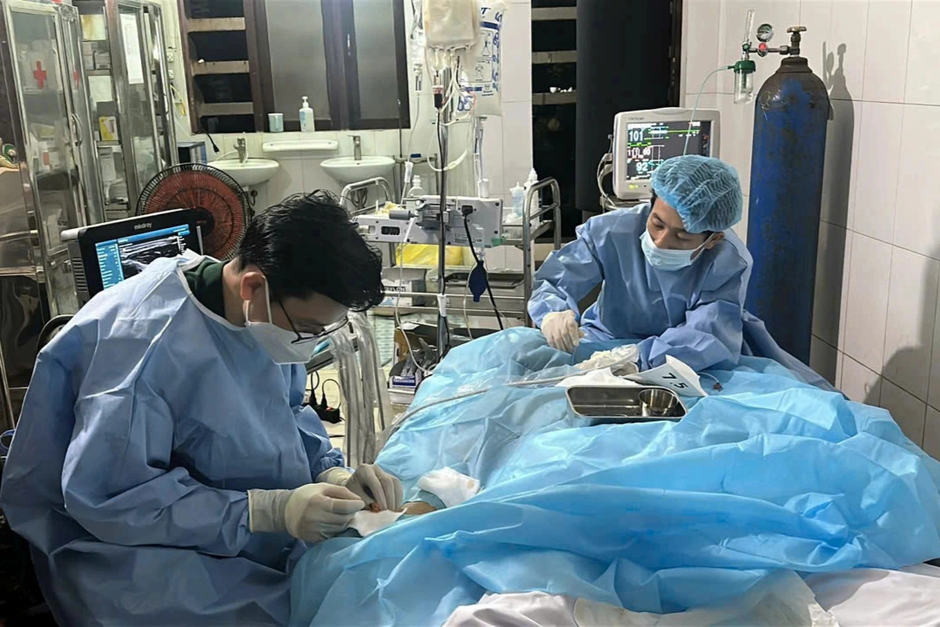 Ê-kíp y bác sĩ thực hiện phẫu thuật ngay trên đảo. Ảnh: BVCC