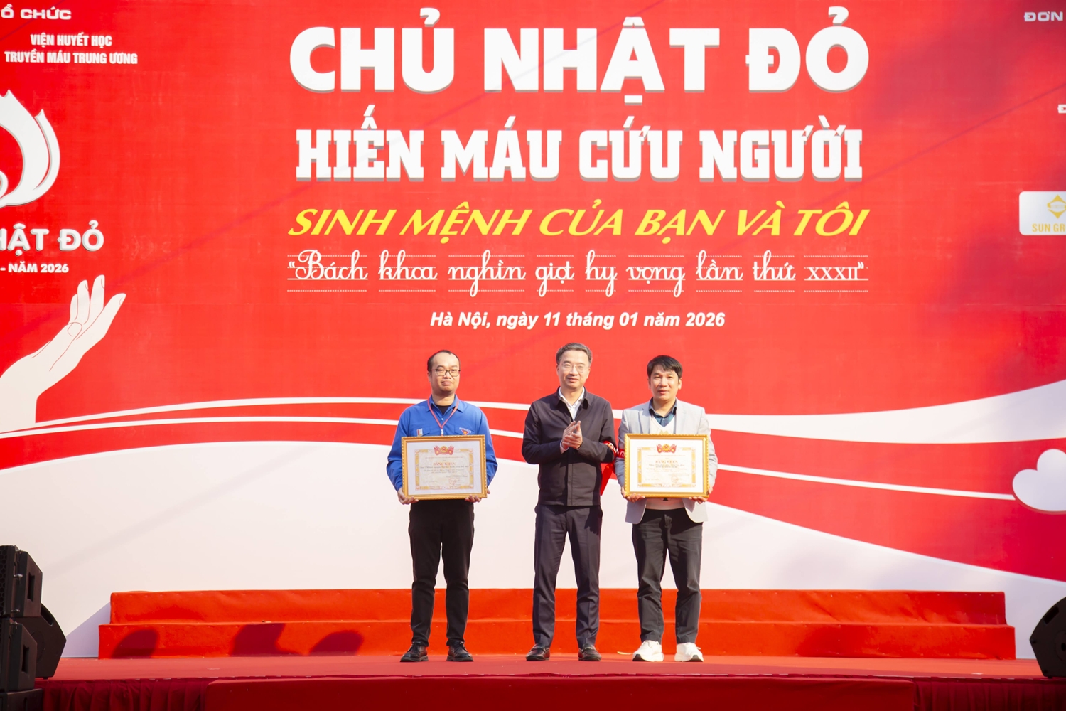 Đ/c Nguyễn Tường Lâm – Bí thư BCH Trung ương Đoàn Thanh niên Cộng sản Hồ Chí Minh trao tặng Bằng khen của Ban Chấp hành Trung ương Đoàn TNCS Hồ Chí Minh cho tập thể và cá nhân đã có thành tích xuất sắc trong công tác vận động và tổ chức thành công chương trình Chủ nhật Đỏ.