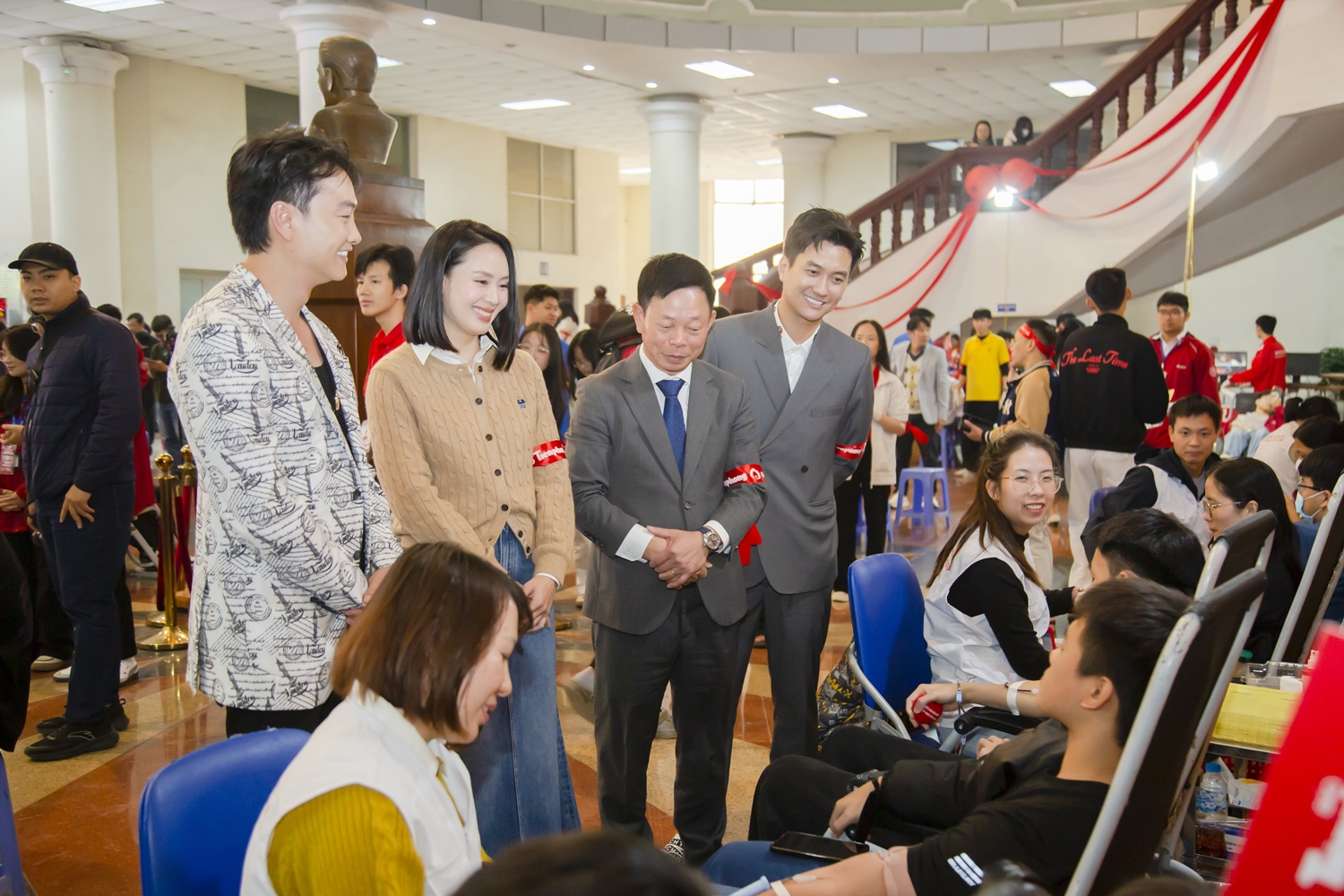 Dàn diễn viên nổi tiếng qua các bộ phim truyền hình VTV: diễn viên Hồng Diễm, diễn viên Phạm Anh Tuấn, diễn viên Trọng Lân giao lưu và động viên người hiến máu.
