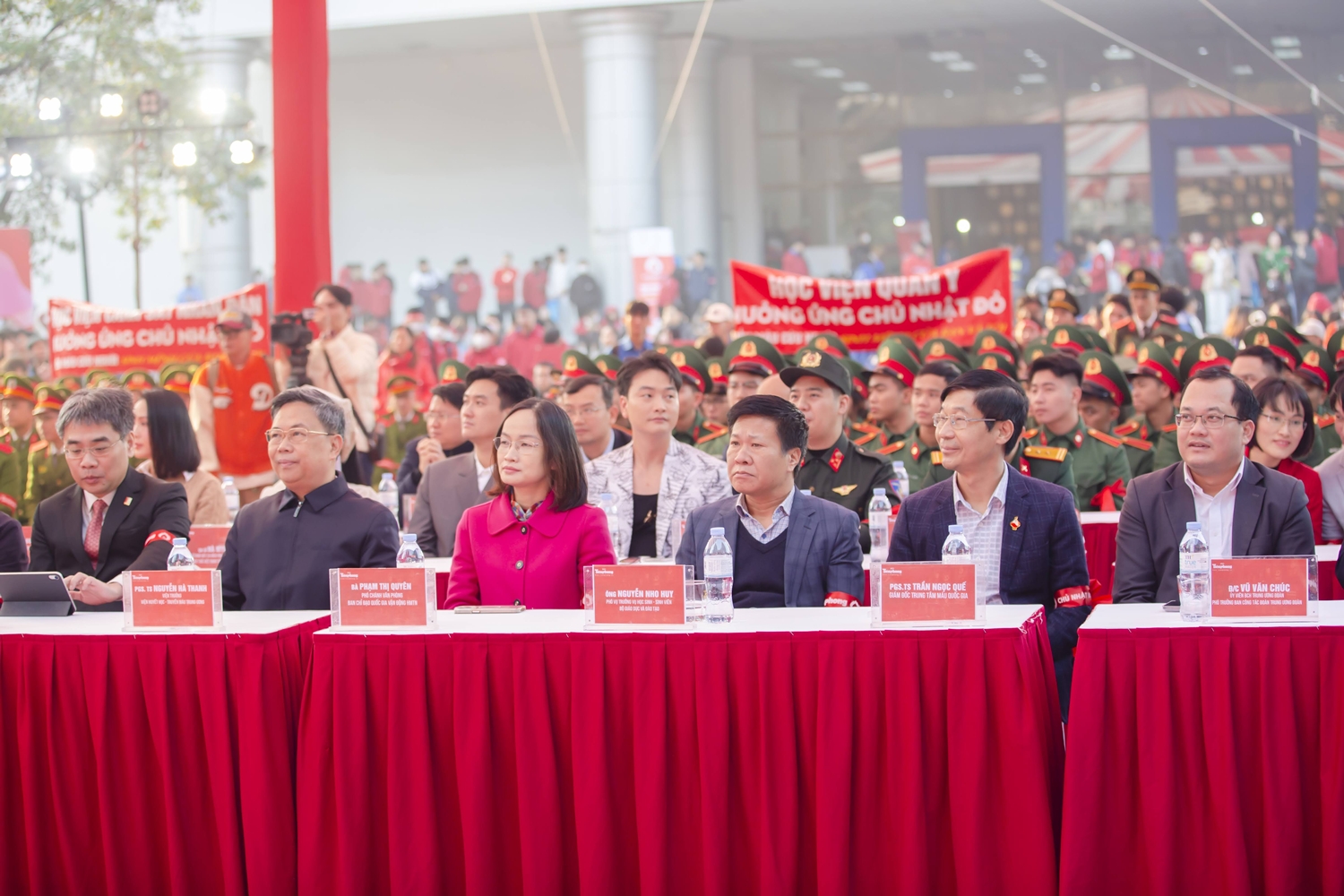 Về phía đơn vị tổ chức và phối hợp có nhà báo Phùng Công Sưởng – Tổng Biên tập Báo Tiền Phong, Trưởng Ban tổ chức; PGS.TS. Nguyễn Hà Thanh – Viện trưởng Viện Huyết học – Truyền máu Trung ương; PGS.TS. Huỳnh Đăng Chính – Phó Giám đốc Đại học Bách khoa Hà Nội; PGS.TS. Trần Ngọc Quế – Giám đốc Trung tâm Máu Quốc gia, Viện Huyết học – Truyền máu Trung ương; Đ/c Đoàn Công Huynh – Nguyên Tổng Biên tập Báo Tiền Phong, Nguyên Cục trưởng Cục Thông tin đối ngoại, Bộ Thông tin và Truyền thông; Đ/c Lê Xuân Sơn – Nguyên Tổng Biên tập Báo Tiền Phong.