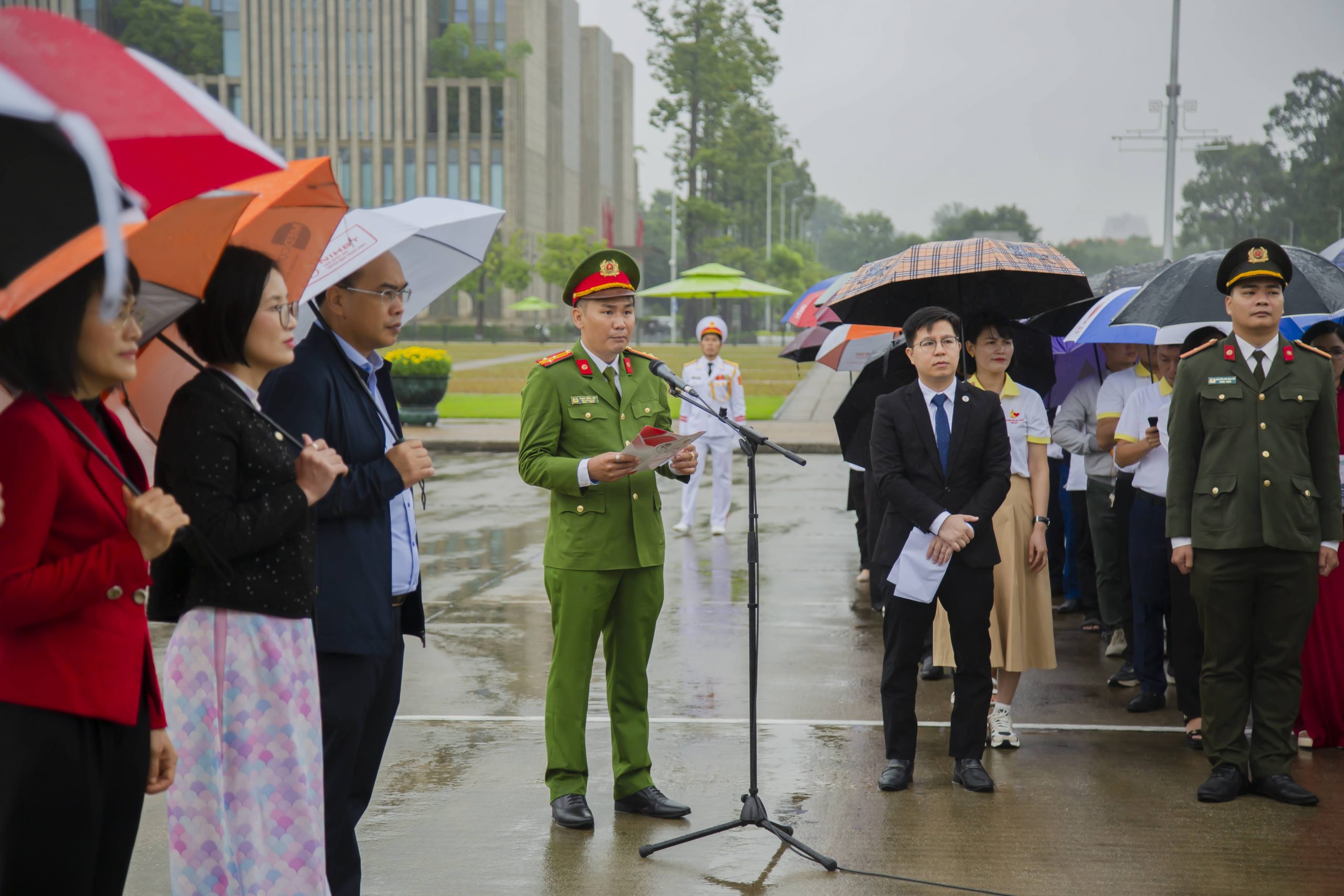 Thượng tá Phạm Hồng Hải đại diện cho 180 người hiến tiểu cầu tiêu biểu năm 2025 thực hiện nghi lễ báo công dâng Bác.
