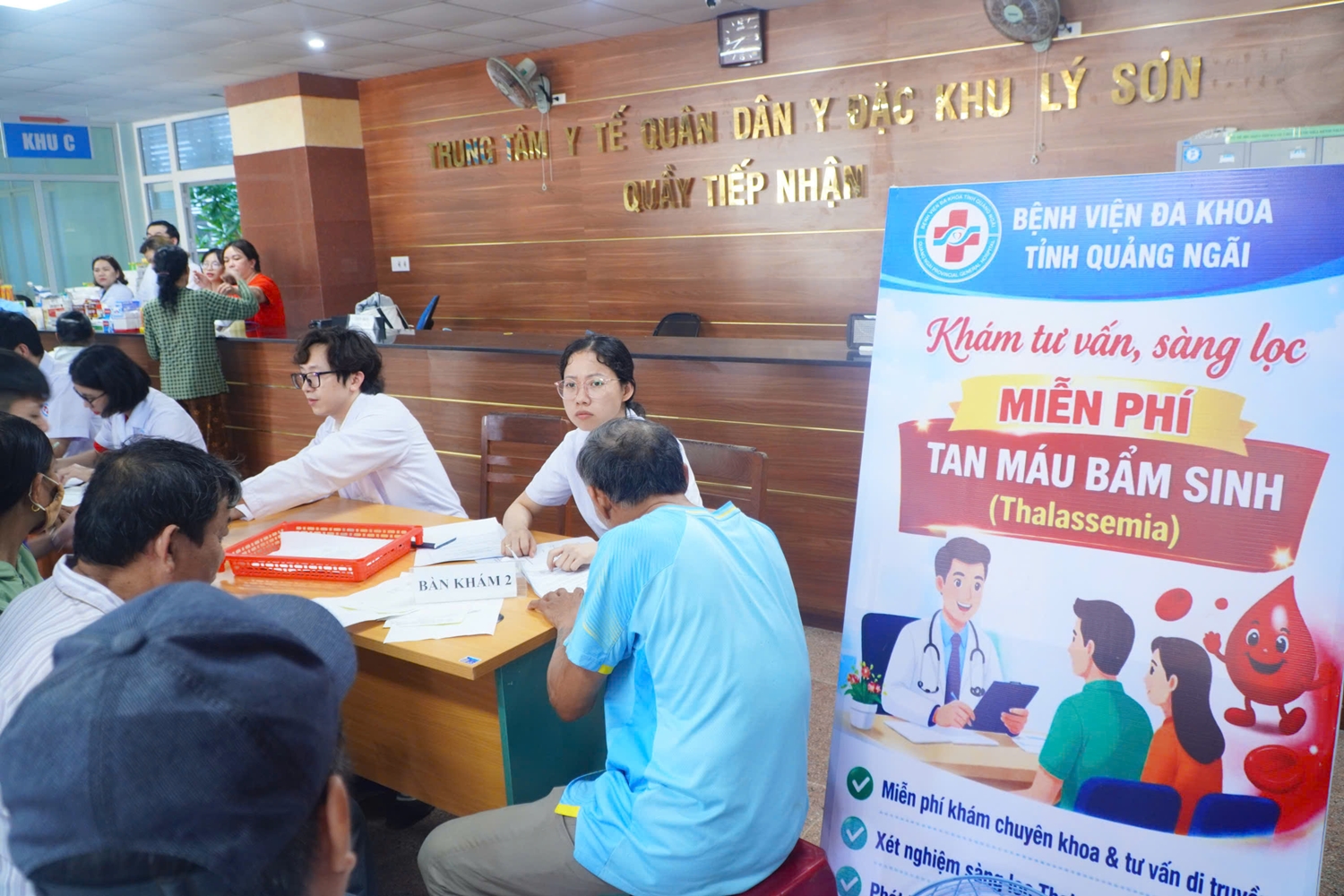 Cũng tại ngày hội hiến máu, Bệnh viện Đa khoa tỉnh Quảng Ngãi đã tư vấn, truyền thông, khám sàng lọc và lấy mẫu xét nghiệm miễn phí bệnh thalassemia (tan máu bẩm sinh) cho hơn 200 người dân tại đảo.