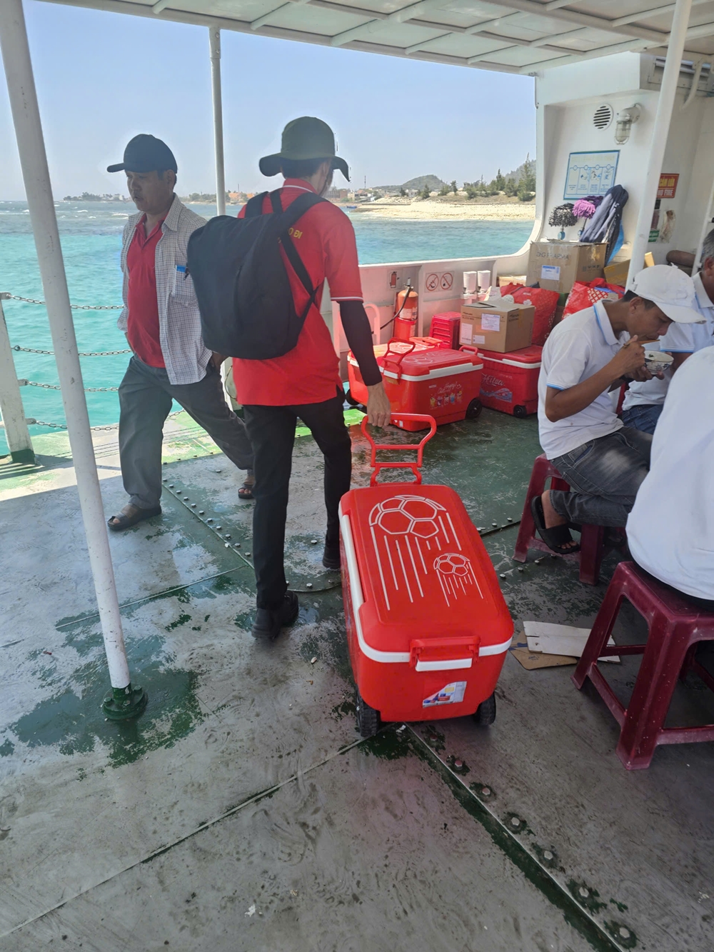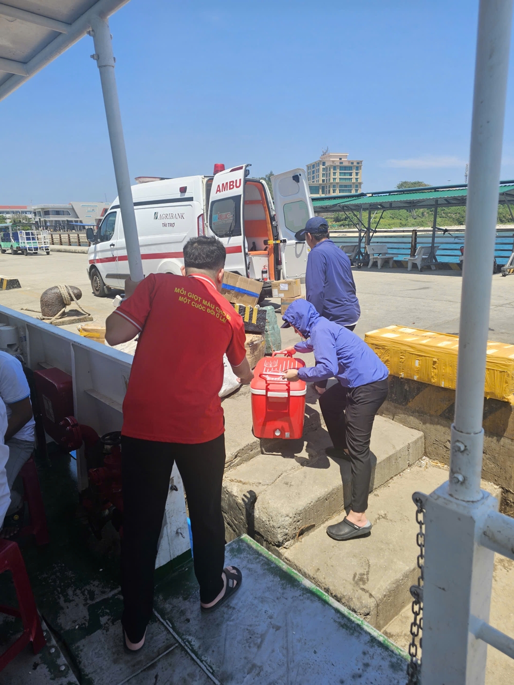 Máu sau khi được tiếp nhận tại đảo được vận chuyển về đất liền.