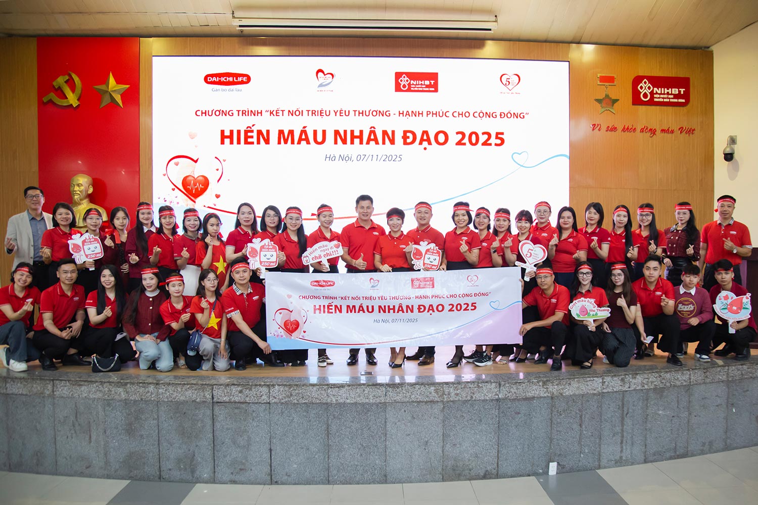Sáng ngày 07/11/2025, Công ty Bảo hiểm Nhân thọ Dai-ichi Life Việt Nam phối hợp cùng Viện Huyết học – Truyền máu Trung ương tổ chức chương trình hiến máu “Kết nối triệu yêu thương – Hạnh phúc cho cộng đồng”. Hoạt động thường niên ý nghĩa này đã thu hút sự tham gia của gần 220 tình nguyện viên là cán bộ, nhân viên, người lao động công ty.