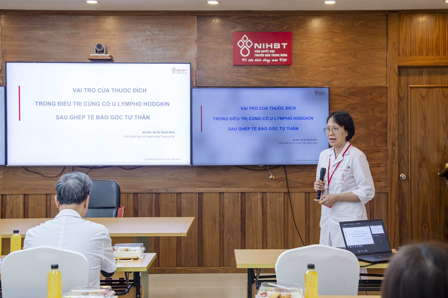 BSCKII. Võ Thị Thanh Bình trình bày vai trò của thuốc đích trong điều trị củng cố U Lympho Hodgkin sau ghép tế bào gốc tự thân.