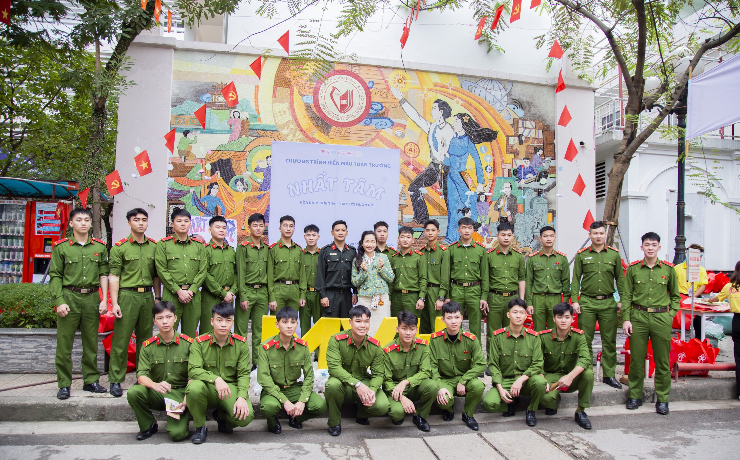 Trong sáng nay, các chiến sĩ thuộc Trung đoàn E30, Cảnh sát bảo vệ mục tiêu cơ quan Đại diện ngoại giao cũng đã tới Trường Đại học Văn hóa Hà Nội, chung tay đồng lòng cùng thầy và trò nhà trường tiếp dòng máu nóng gửi trao tới người bệnh.