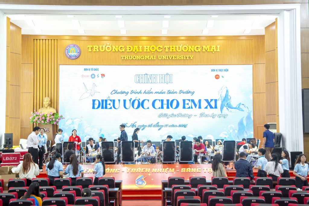 Ngày 06/11/2025, tại khuôn viên trường, chương trình đã được tổ chức trong không khí rộn ràng và ấm áp. Hàng trăm cán bộ, giảng viên, sinh viên đã có mặt từ sớm để đăng ký và xếp hàng tham gia hiến máu. Sự chủ động và tinh thần nhiệt huyết của tuổi trẻ Thương mại đã tạo nên một ngày hội đầy ý nghĩa và nhân văn.