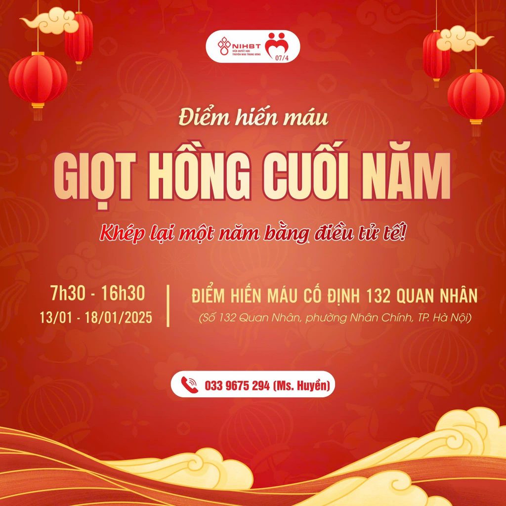 - Địa điểm: Điểm hiến máu cố định 132 Quan Nhân (phường Nhân Chính, TP. Hà Nội).