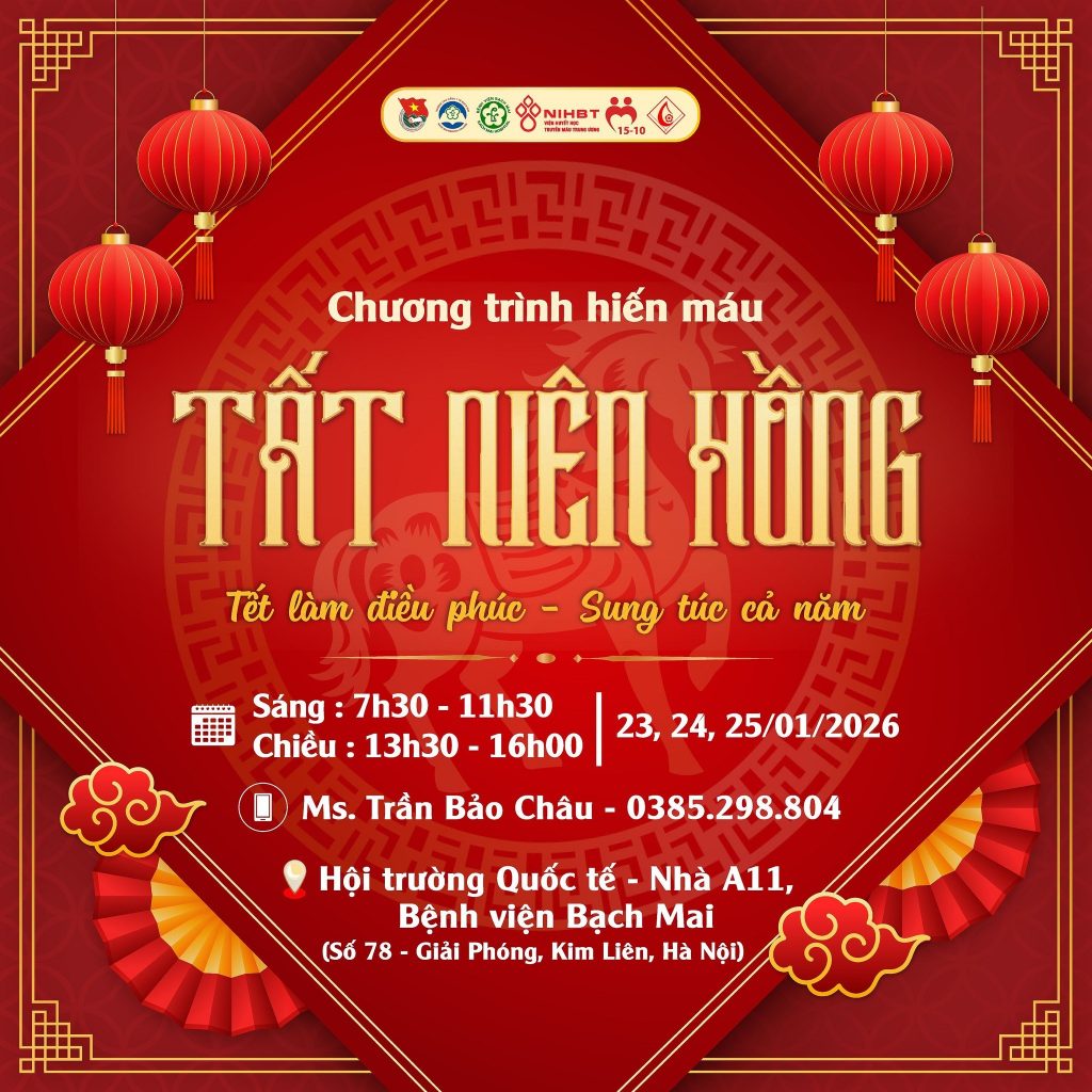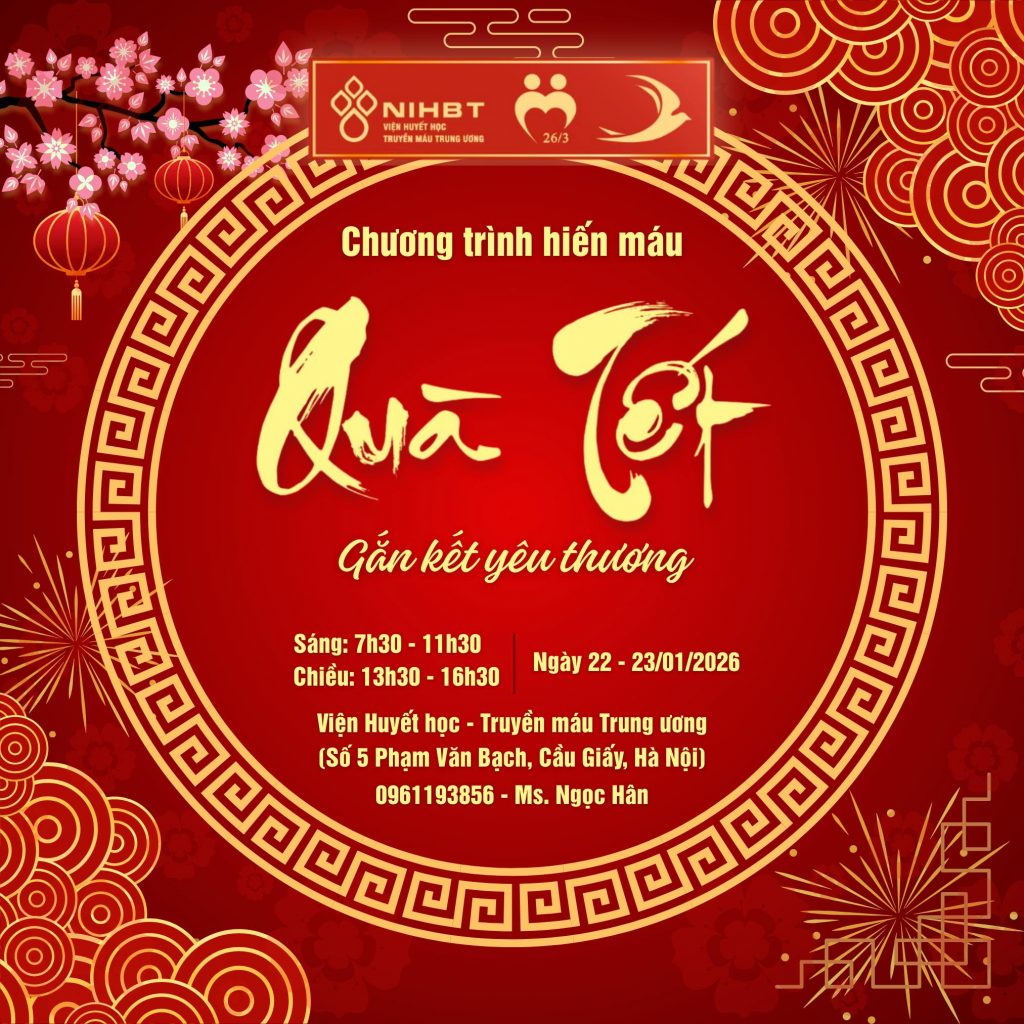 Trong không khí hân hoan đón chào năm mới, mời Quý vị tham khảo một số lịch hiến máu dịp trước Tết Nguyên đán do Viện Huyết học – Truyền máu Trung ương phối hợp với Hội Thanh niên vận động hiến máu Việt Nam tổ chức.
