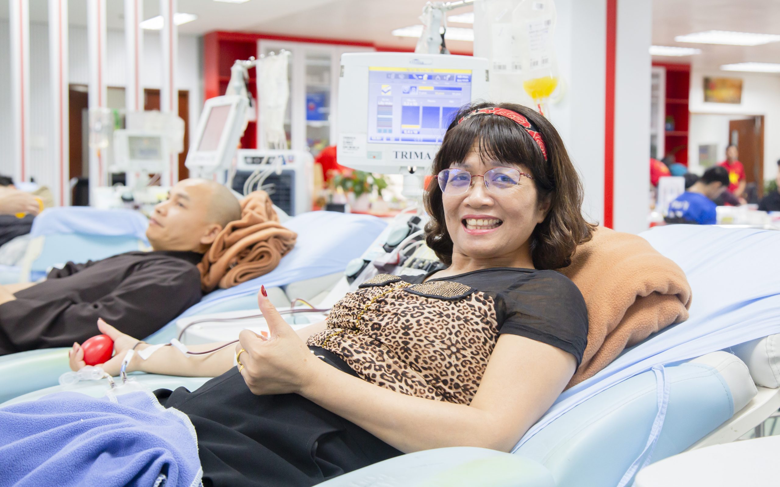 Chị Loan tham gia hiến tiểu cầu tại Viện Huyết học – Truyền máu Trung ương.
