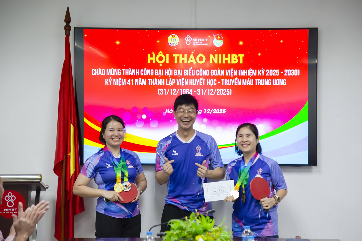 Gần hai tháng triển khai (từ 01/11 đến 25/12/2025), Hội thao chào mừng thành công Đại hội đại biểu Công đoàn Viện Huyết học – Truyền máu Trung ương nhiệm kỳ 2025-2030 và Kỷ niệm 41 năm thành lập Viện (31/12/1984 – 31/12/2025), kết thúc thành công tốt đẹp.