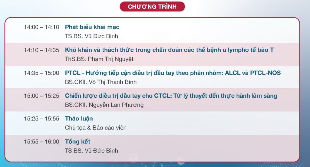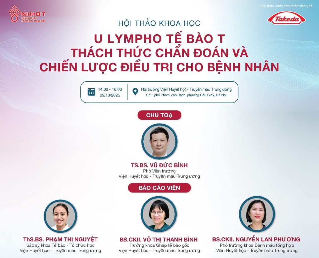 Hội thảo là cơ hội để cập nhật kiến thức mới, trao đổi kinh nghiệm thực tiễn và tăng cường hợp tác trong chẩn đoán, điều trị u lympho tế bào T tại Việt Nam. Trân trọng kính mời các bác sĩ quan tâm tham dự!