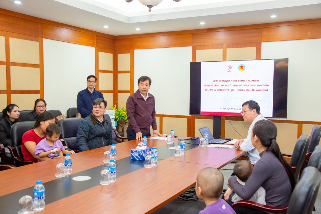 Thay mặt người bệnh, PGS.TS. Vũ Đức Bình, Phó Viện trưởng gửi lời tri ân sâu sắc tới các cán bộ, nhân viên Kiểm toán Nhà nước chuyên ngành II và chia sẻ: “Kiểm toán Nhà nước chuyên ngành II luôn đồng hành với Viện trong nhiều hoạt động hỗ trợ người bệnh, trong đó có những đơn vị máu quý giá. Mặc dù thời điểm cuối năm hết sức bận rộn, nhưng các anh chị vẫn dành thời gian đến với người bệnh, đó cũng là sự đồng hành hết sức ý nghĩa với nhân viên y tế để giúp đỡ người bệnh”.