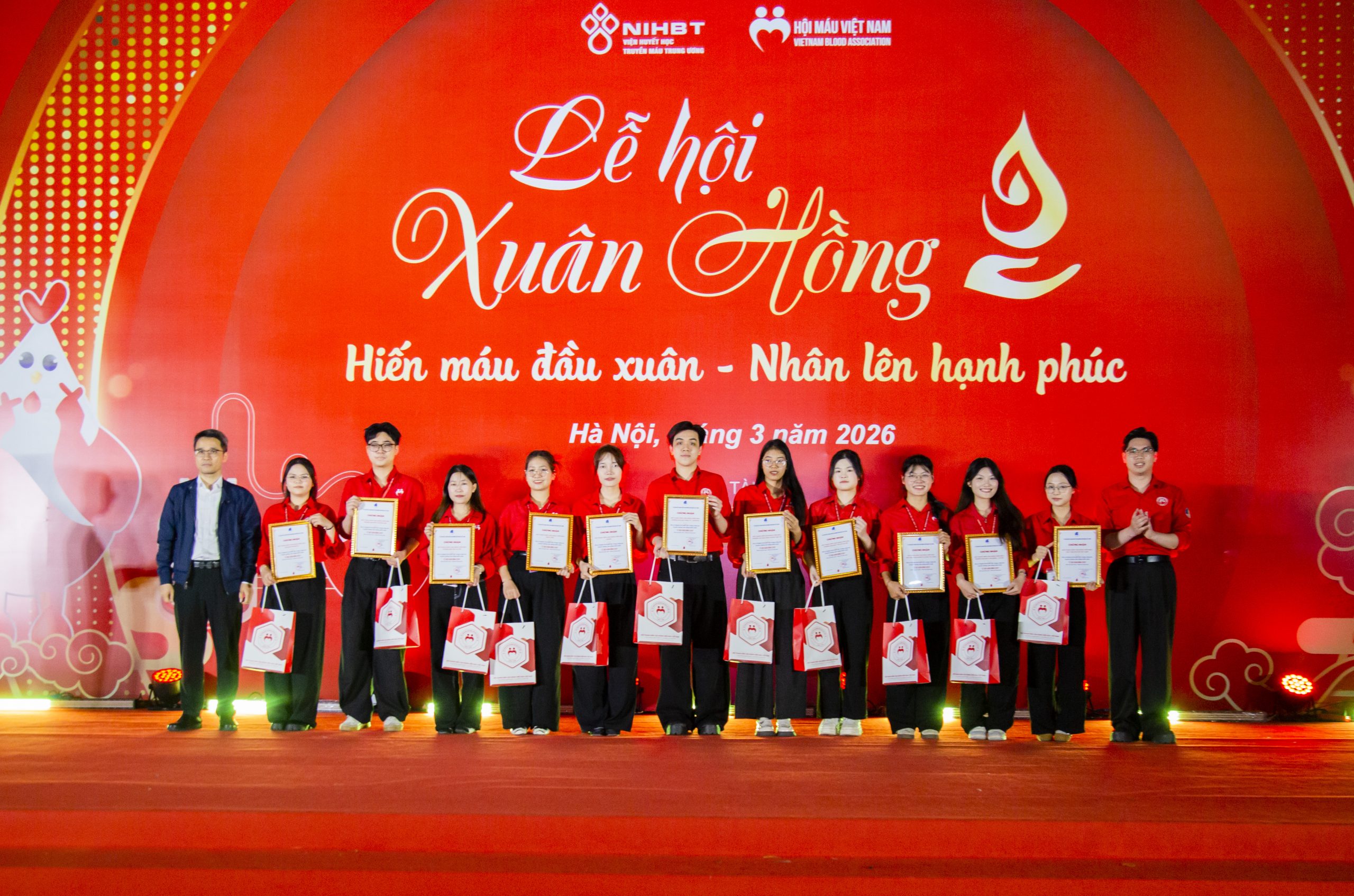 Nhân dịp này, đại diện Viện Huyết học – Truyền máu Trung ương, PGS.TS. Trần Ngọc Quế cũng đã trao giấy khen và gửi lời động viên tới các tập thể, cá nhân thuộc Hội Thanh niên vận động hiến máu Việt Nam vì những đóng góp tích cực cho thành công của Lễ hội Xuân hồng 2026.