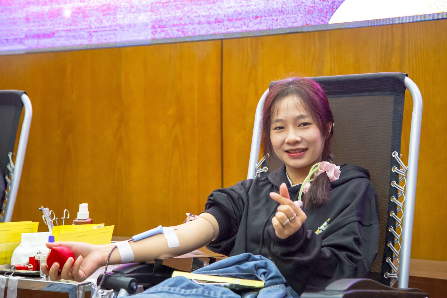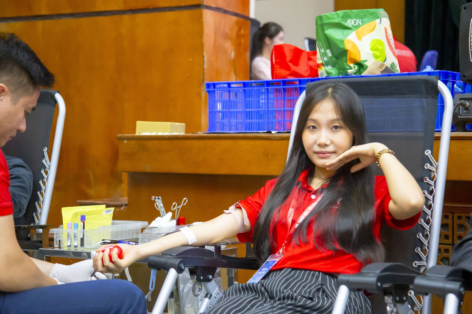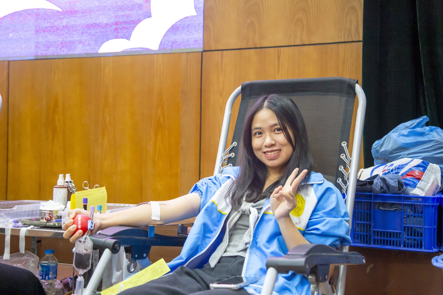 Tham gia chương trình với vai trò tình nguyện viên cũng là lần đầu hiến máu, bạn Nguyễn Thu Hiền (Sinh viên ngành Quản trị Du lịch và Lữ hành) háo hức chia sẻ: “Ban đầu em cũng rất lo lắng, nhưng sau khi hiến em thấy không sợ như mình nghĩ . Em rất vui vì máu của mình có thể cứu giúp được nhiều bệnh nhân, đặc biệt là các em nhỏ đang điều trị tại Viện Huyết học – Truyền máu Trung ương”.