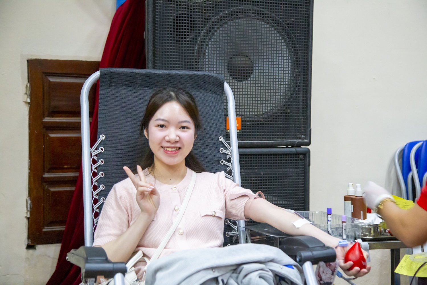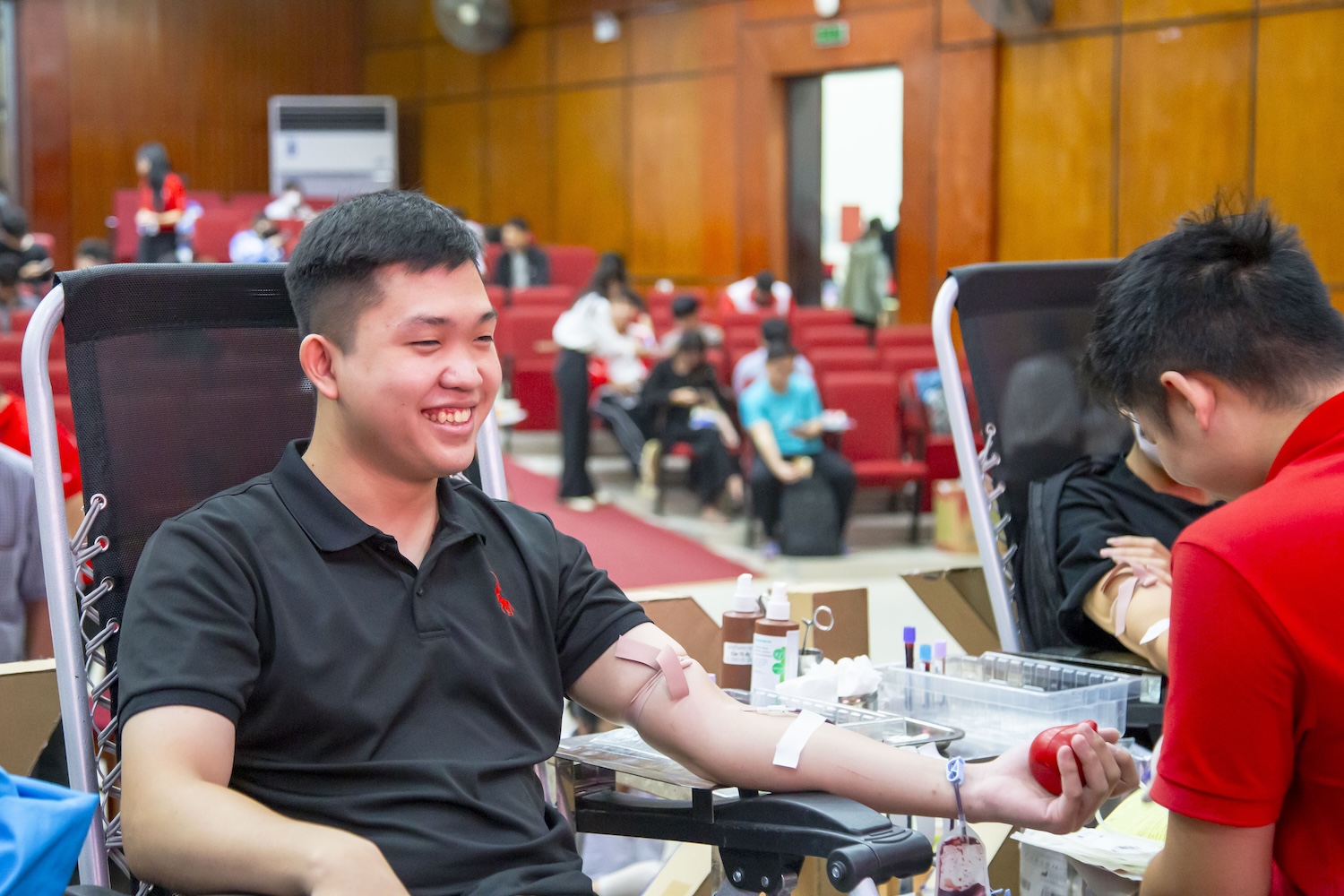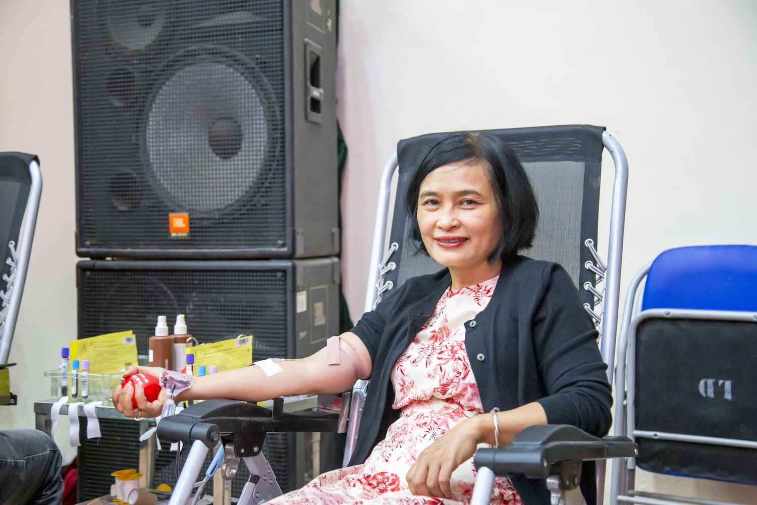 Tham gia chương trình với vai trò tình nguyện viên cũng là lần đầu hiến máu, bạn Nguyễn Thu Hiền (Sinh viên ngành Quản trị Du lịch và Lữ hành) háo hức chia sẻ: “Ban đầu em cũng rất lo lắng, nhưng sau khi hiến em thấy không sợ như mình nghĩ . Em rất vui vì máu của mình có thể cứu giúp được nhiều bệnh nhân, đặc biệt là các em nhỏ đang điều trị tại Viện Huyết học – Truyền máu Trung ương”.