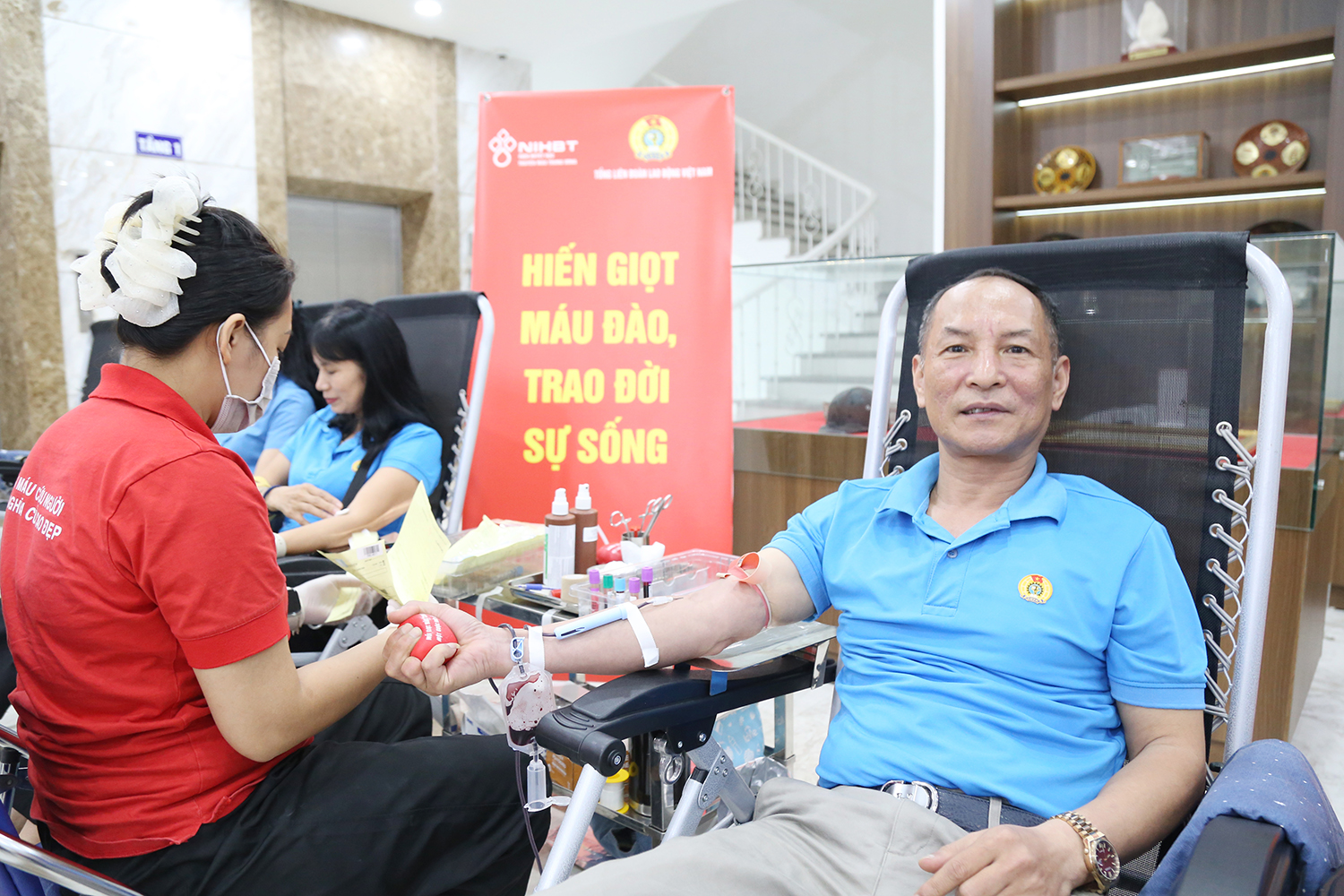 Chương trình hiến máu do Tổng Liên đoàn Lao động Việt Nam phối hợp với Viện Huyết học – Truyền máu Trung ương tổ chức đã thu hút nhiều người tham gia.