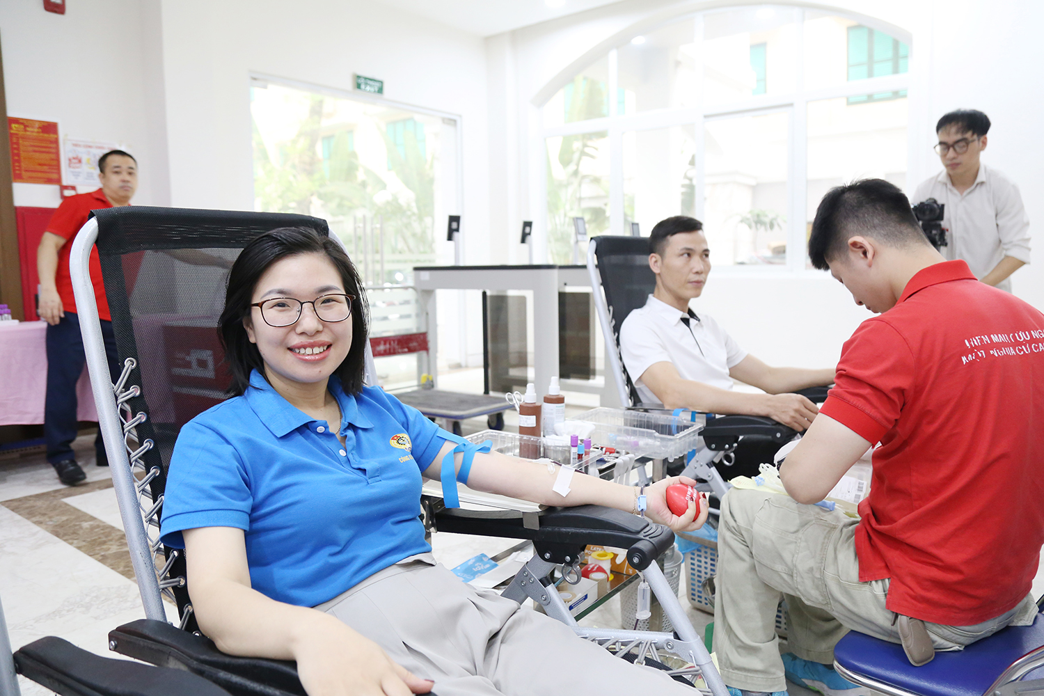 Chị Nguyễn Thị Thúy Nga, Ban Công tác Công đoàn, Tổng Liên đoàn Lao động Việt Nam cho biết: “Sau ba lần đăng ký hiến máu đều bị loại vì không đủ điều kiện sức khỏe, hôm nay tôi đã “vượt rào” thành công, tôi rất vui vì cuối cùng mình cũng hoàn thành được mục tiêu là tham gia hiến máu. Tôi hi vọng sẽ có đủ sức khỏe để tiếp tục chia sẻ những giọt máu của mình với người bệnh trong những lần tới”.