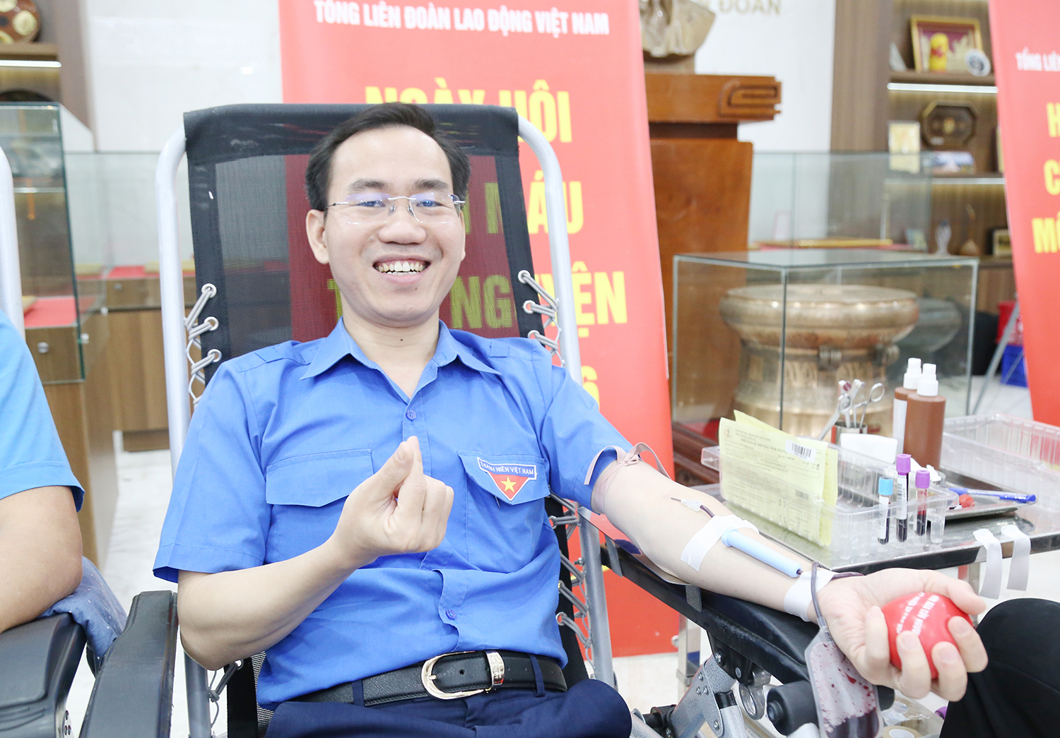 Lần thứ 5 hiến máu, anh Pham Nghiêm Long, Bí thư Đoàn Thanh niên, Tổng Liên đoàn Lao động Việt Nam chia sẻ: “Có sức khỏe là điều vô cùng hạnh phúc và càng hạnh phúc hơn khi được chia sẻ niềm vui đó cho người bệnh và cộng đồng. Có lẽ trong rất nhiều thứ cho đi thì cho máu là hành động nhân văn nhất giữa con người với con người”.