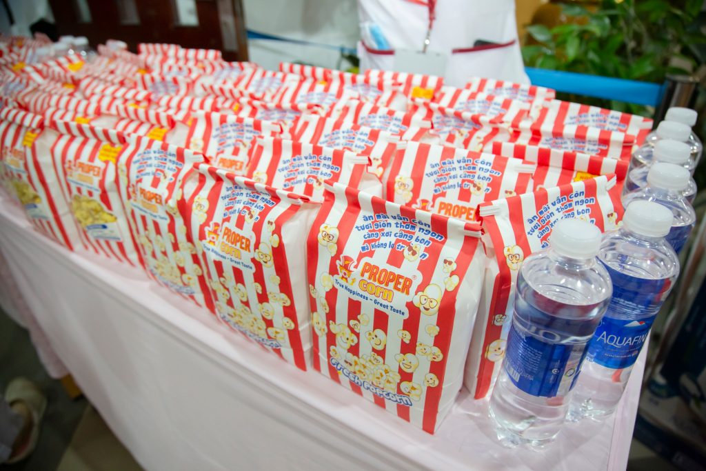 Những phần ăn nhẹ được Viện phối hợp với nhà tài trợ chuẩn bị để người bệnh có một buổi xem phim trọn vẹn và ý nghĩa.