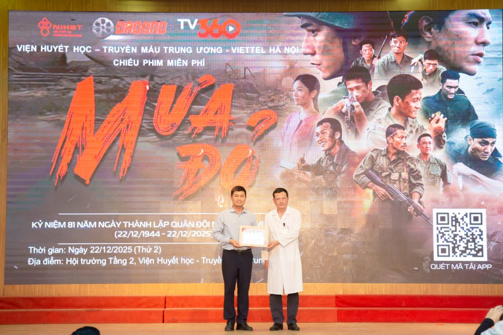 Ngày 22/12, nhân dịp Kỷ niệm 81 năm Ngày thành lập Quân đội nhân dân Việt Nam, Viện Huyết học – Truyền máu Trung ương phối hợp với Viettel Hà Nội và Câu lạc bộ Nhạc kịch CNA thuộc Doanh nghiệp xã hội Social Impact tổ chức chương trình chiếu miễn phí phim “Mưa đỏ” dành cho cán bộ, nhân viên, người hiến máu và người bệnh tại Viện.