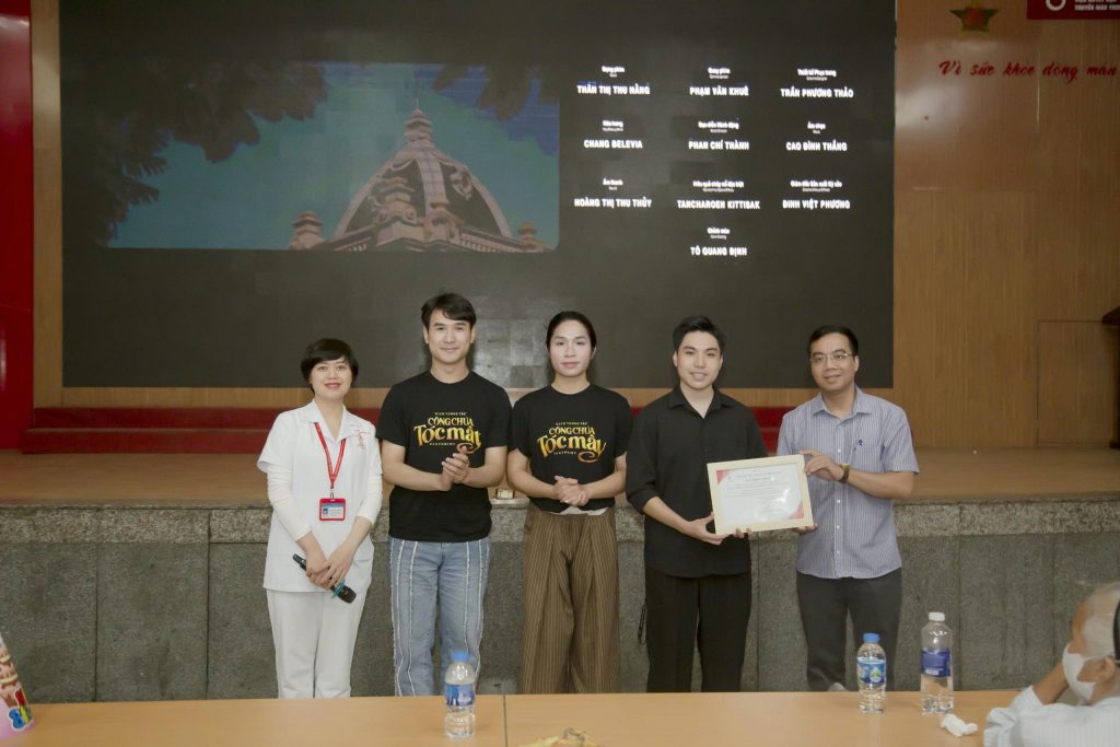 ThS. Nguyễn Thành Linh và ThS. Triệu Thị Biển (cùng là Phó Trưởng phòng Công tác xã hội, Viện Huyết học – Truyền máu Trung ương) trao giấy chứng nhận cho đại diện Câu lạc bộ Nhạc kịch thuộc Doanh nghiệp Xã hội Social Impact.