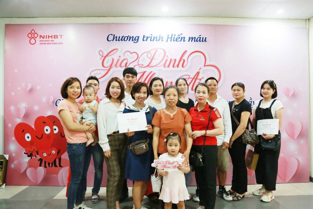Gia đình ông Lê Trung Truyền cùng bạn bè, người dân địa phương đi hiến máu tại chương trình Lễ hội Xuân hồng.