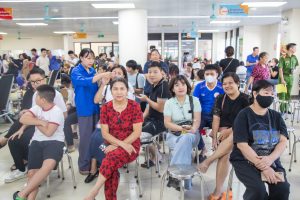 Ngay từ sáng sớm, khu vực tổ chức hiến máu đã rộn ràng người đăng ký.