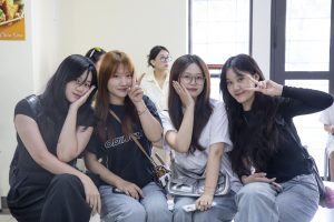 Nhóm bạn trẻ Quỳnh Anh – Quỳnh Ánh – Ngọc Linh – Thanh Thảo (sinh viên Trường Đại học Kinh doanh và Công nghệ Hà Nội) rủ nhau dậy từ sớm để cùng tham gia hiến máu, được biết các cô gái đều từng hiến máu ít nhất 1 lần.