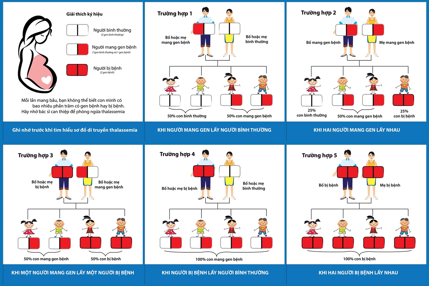 Vì vậy, với một cặp vợ chồng, khi biết một người không mang gen bệnh thalassemia thì con không bị bệnh thalassemia.