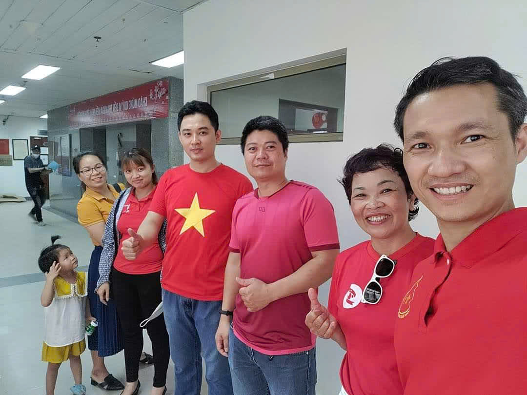 Anh Đoàn Hải Bằng (áo có hình ngôi sao) lưu giữ lại kỷ niệm đi hiến tiểu cầu tại Viện Huyết học – Truyền máu Trung ương.