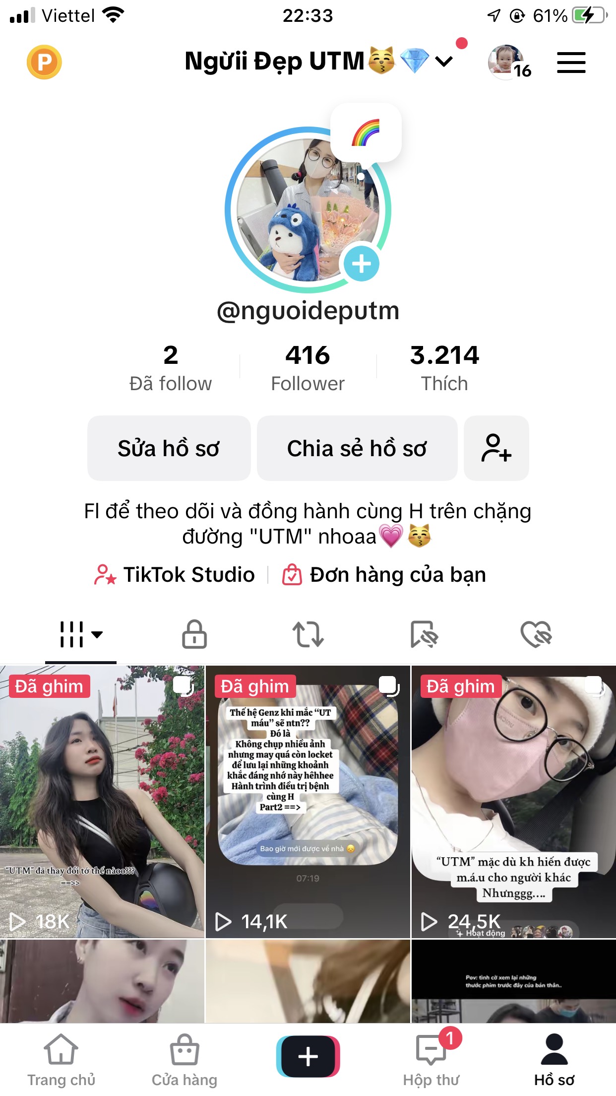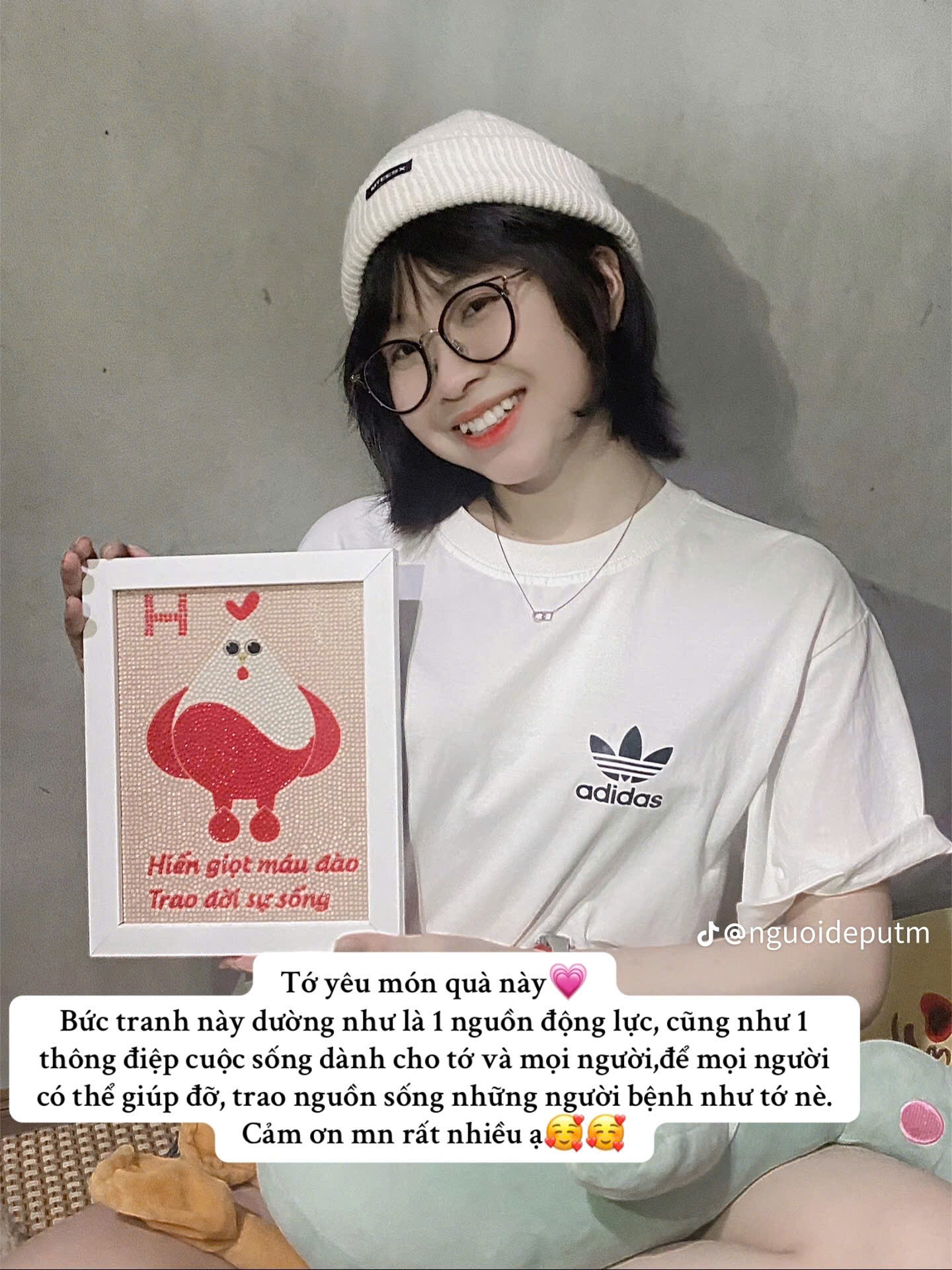 Kênh TikTok “Người đẹp UT máu” cũng được ra đời từ đó, như một cuốn nhật ký Hương ghi lại hành trình đấu tranh với bệnh tật. Những video giản dị, chân thật của bạn trẻ nhanh chóng lan tỏa, chạm đến trái tim nhiều người.