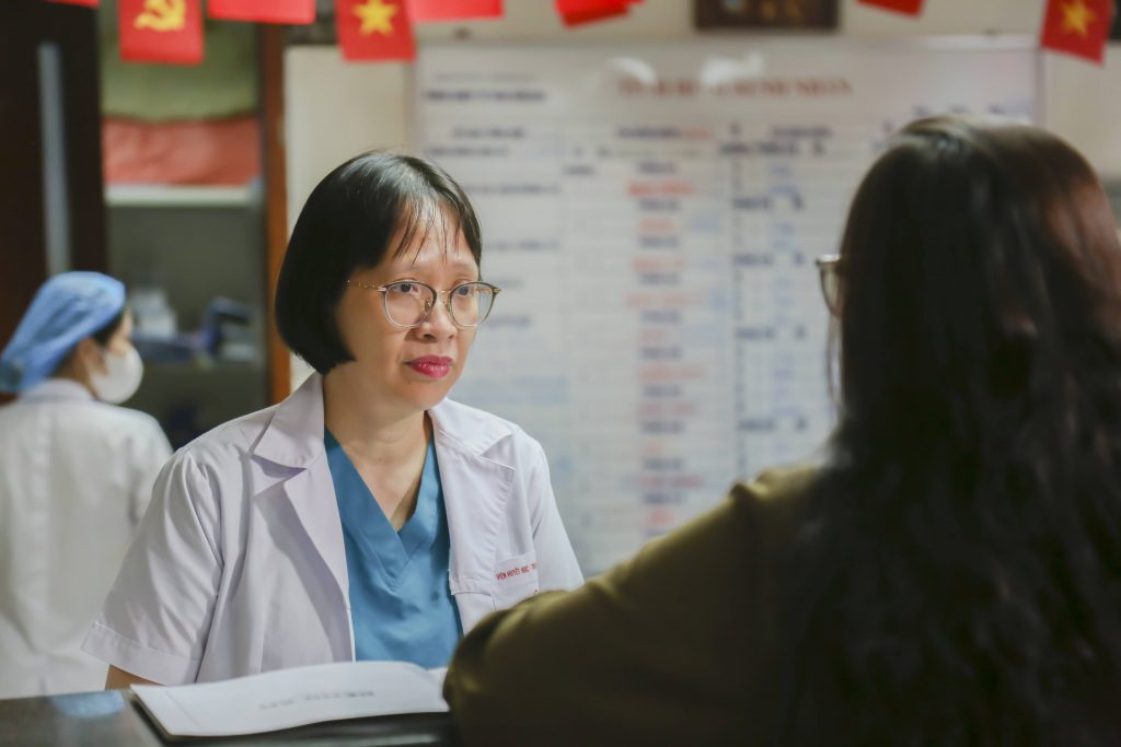 BSCKII. Võ Thị Thanh Bình, Trưởng khoa Ghép tế bào gốc tư vấn cho người bệnh (ảnh: Trần Chiến).