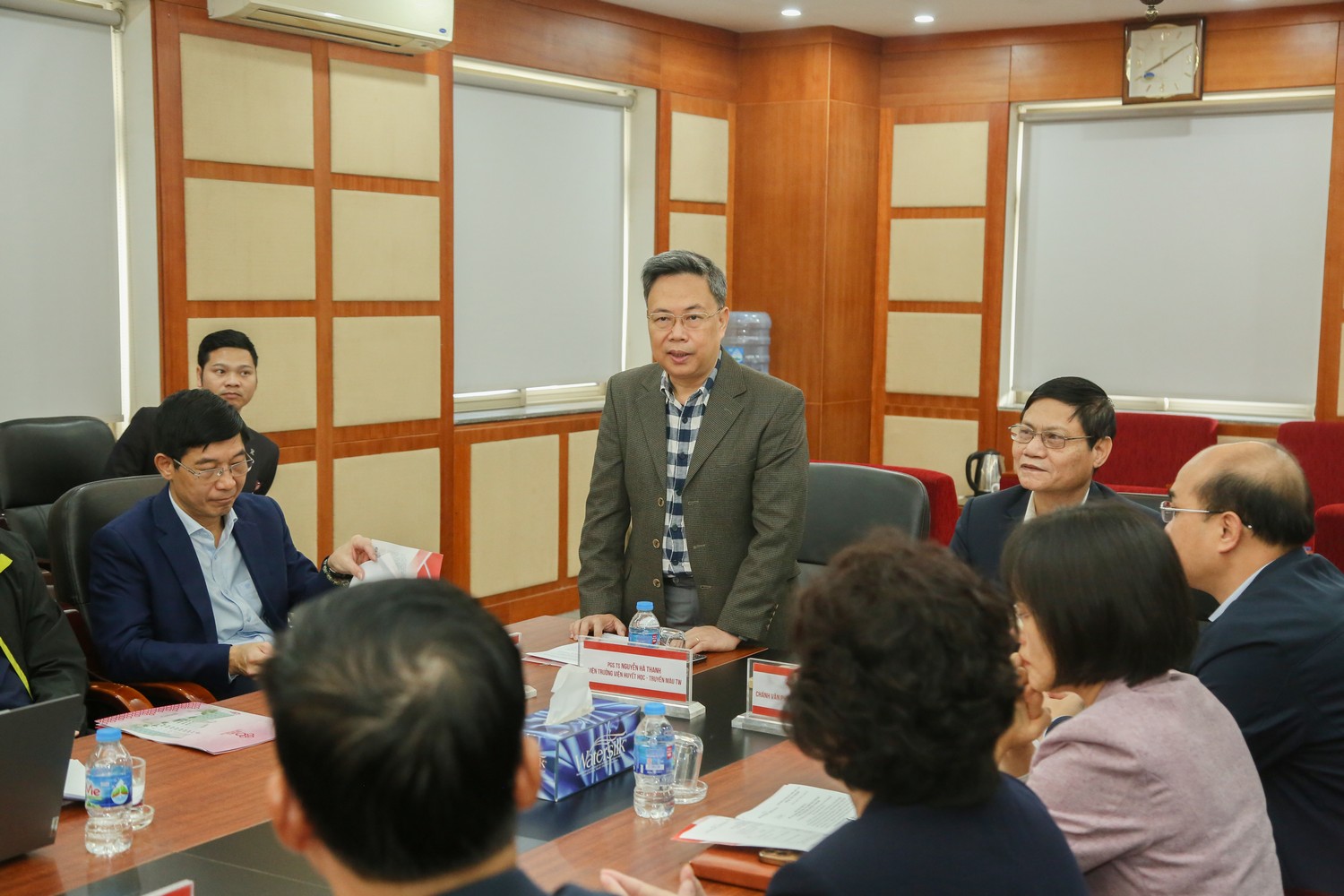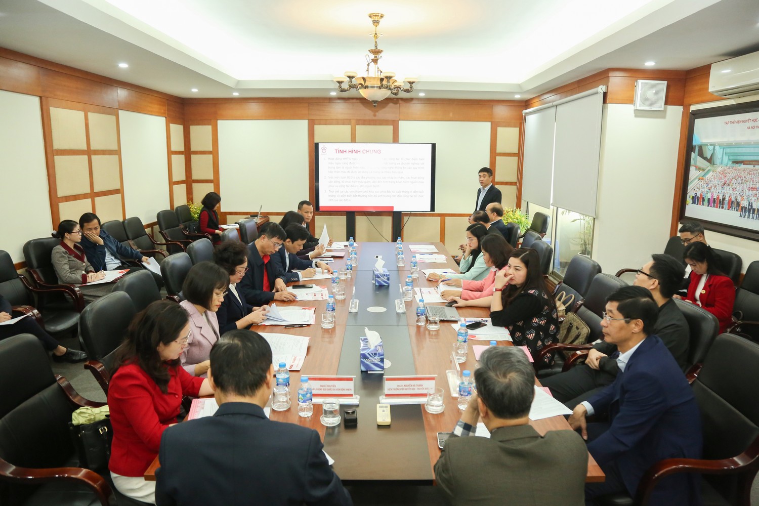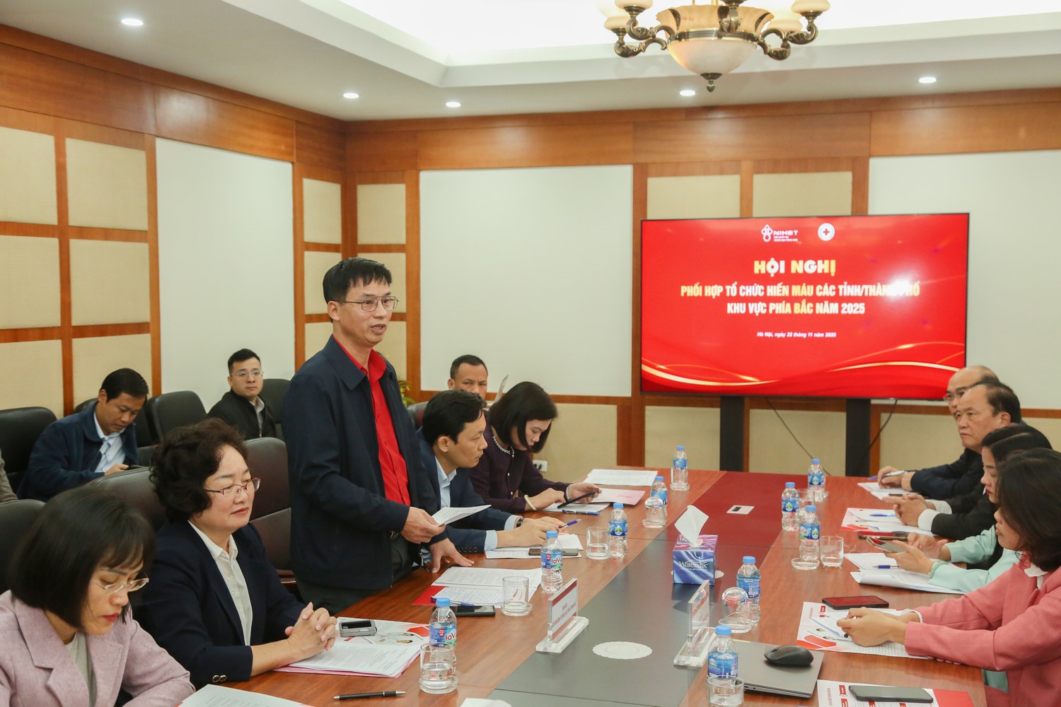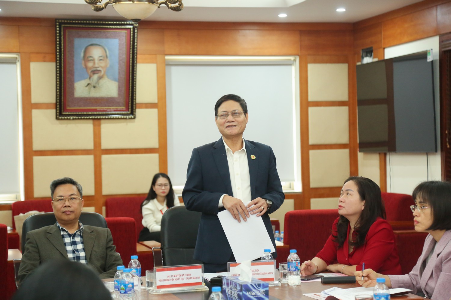 Tham dự và chủ trì Hội nghị có PGS.TS. Nguyễn Hà Thanh, Viện trưởng Viện Huyết học – Truyền máu Trung ương; BS. Lê Gia Tiến, Chánh Văn phòng Ban Chỉ đạo quốc gia Vận động hiến máu tình nguyện (HMTN); PGS.TS. Trần Ngọc Quế, Giám đốc Trung tâm Máu quốc gia, Viện Huyết học – Truyền máu Trung ương.