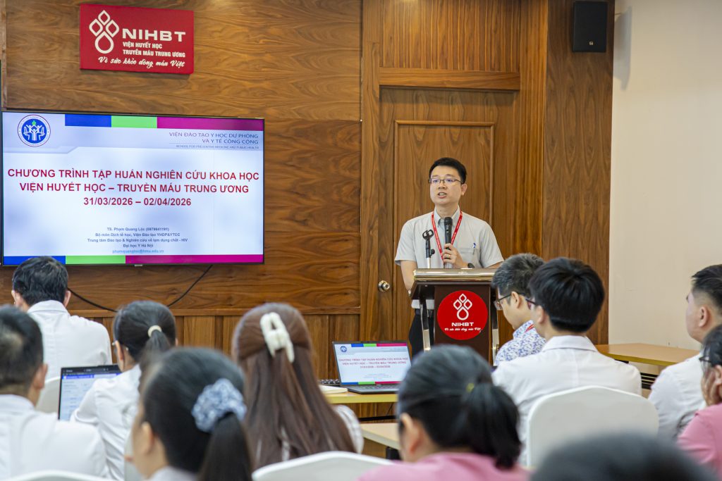 Từ ngày 31/3 – 2/4/2026, Viện Huyết học – Truyền máu TW đã tổ chức lớp tập huấn Phương pháp nghiên cứu khoa học dành cho các cán bộ tham gia thực hiện đề tài nghiên cứu khoa học của các đơn vị thuộc Viện.
