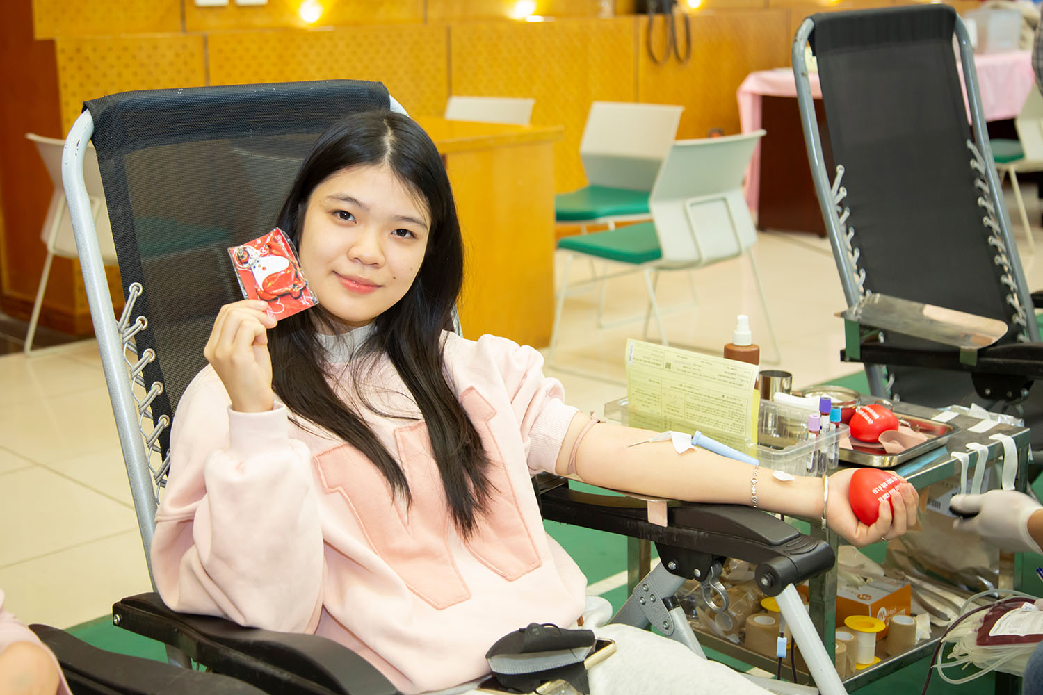 Niềm vui hiện rõ trên gương mặt các bạn sinh viên khi được trao tặng những phần quà tri ân sau khi tham gia hiến máu.