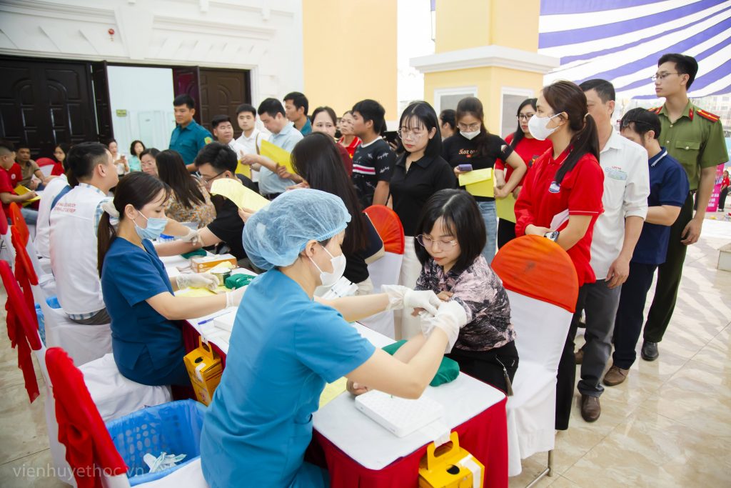 Người dân Thái Nguyên có mặt tại điểm hiến máu từ sáng sớm.