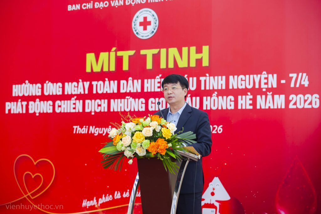 Sáng ngày 3/4/2026, tại Trung tâm Văn hóa tỉnh Thái Nguyên đã diễn ra Lễ mít tinh hưởng ứng Ngày Toàn dân hiến máu tình nguyện 7/4 và phát động Chiến dịch “Những giọt máu hồng – hè 2026”. Sự kiện đánh dấu bước khởi đầu cho đợt cao điểm huy động nguồn máu dự trữ phục vụ công tác cấp cứu và điều trị trong giai đoạn hè sắp tới.