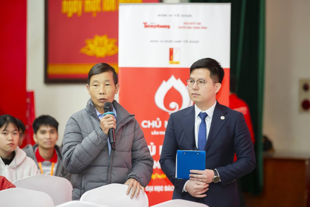 Ông Phạm Văn Tân chia sẻ câu chuyện về quá trình điều trị và được nhận hàng trăm đơn vị máu của mình tại chương trình Họp báo giới thiệu về Chủ nhật Đỏ năm 2026