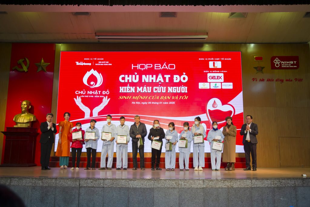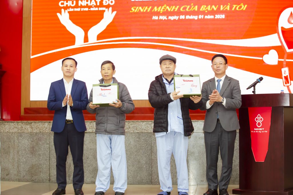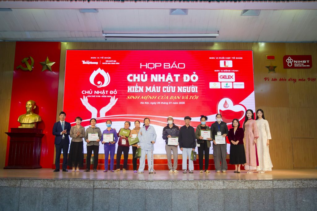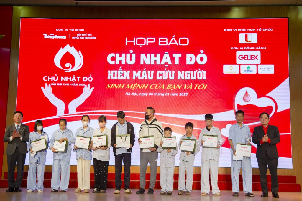 Tại chương trình Họp báo giới thiệu về Chủ nhật Đỏ lần thứ XVIII – năm 2026, Ban Tổ chức đã tặng quà cho trên 30 người bệnh điều trị tại Khoa Bệnh máu lành tính và Trung tâm Thalassemia của Viện Huyết học – Truyền máu TW.