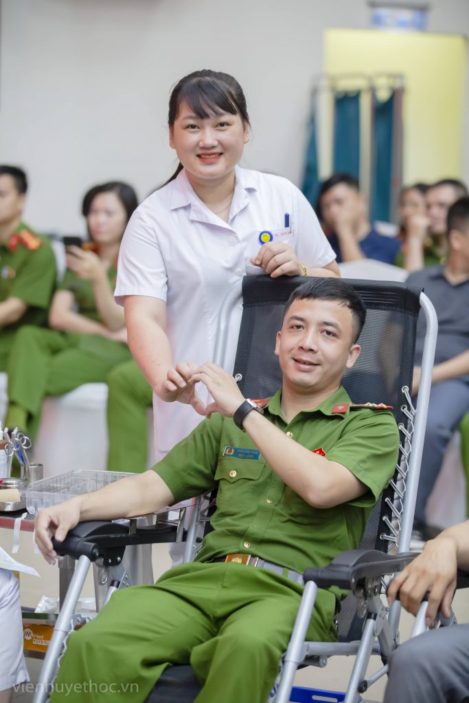 Cán bộ Công an tham gia hiến máu cũng chính là chồng của nhân viên y tế “Viện Máu”, hạnh phúc gia đình được nhân lên khi mỗi thành viên đều đang tích cực đóng góp những điều tốt lành cho cộng đồng.