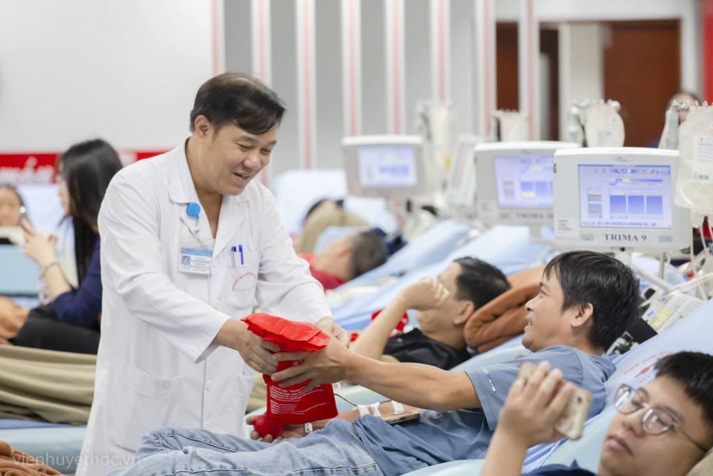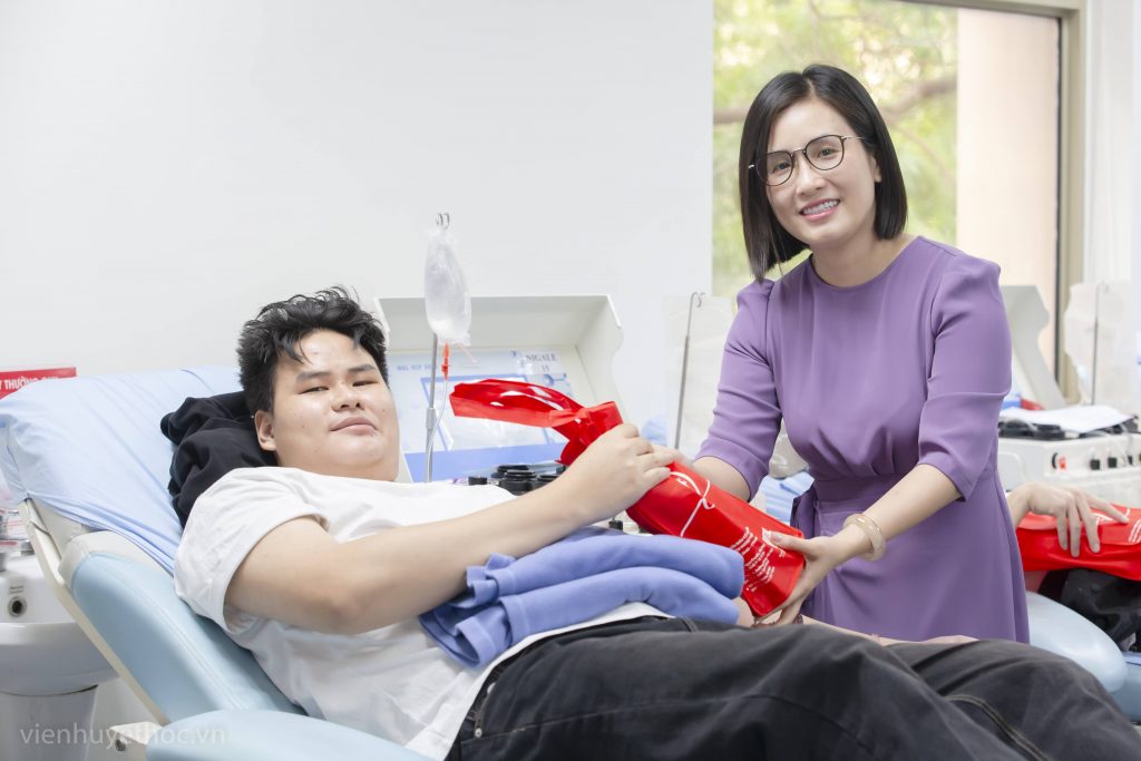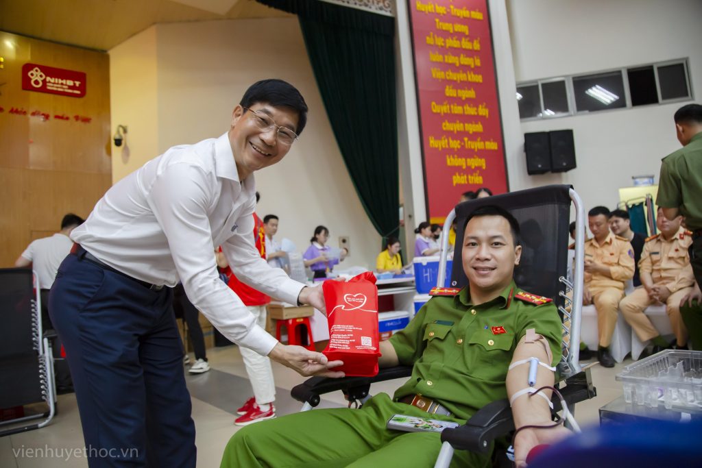 Tại chương trình, PGS.TS. Trần Ngọc Quế, Giám đốc Trung tâm Máu Quốc gia, Viện Huyết học – Truyền máu Trung ương đã bày tỏ tri ân sâu sắc đến những người đã và đang tiếp tục hành trình trao giọt máu cho người bệnh. Nhân ngày kỷ niệm đặc biệt này, PGS.TS. Trần Ngọc Quế cùng lãnh đạo các đơn vị thuộc Trung tâm Máu Quốc gia đã tặng những món quà ý nghĩa cho người hiến máu thay cho lời cảm ơn của những người bệnh được truyền máu và các y, bác sĩ Viện Huyết học – Truyền máu Trung ương.