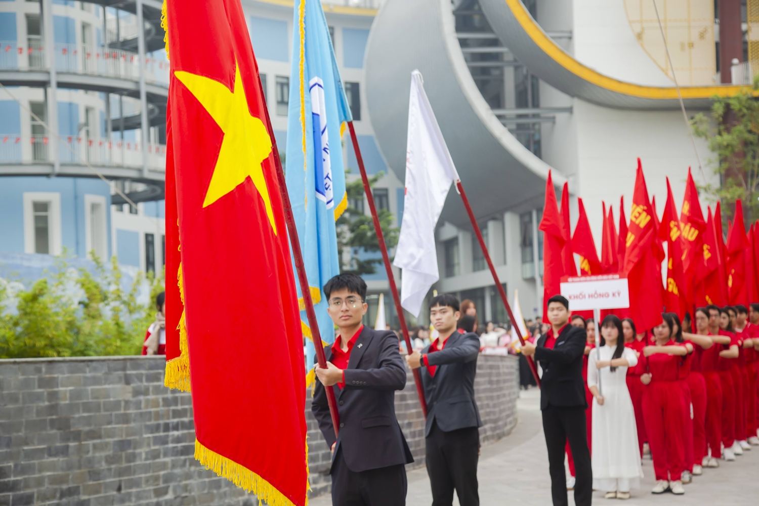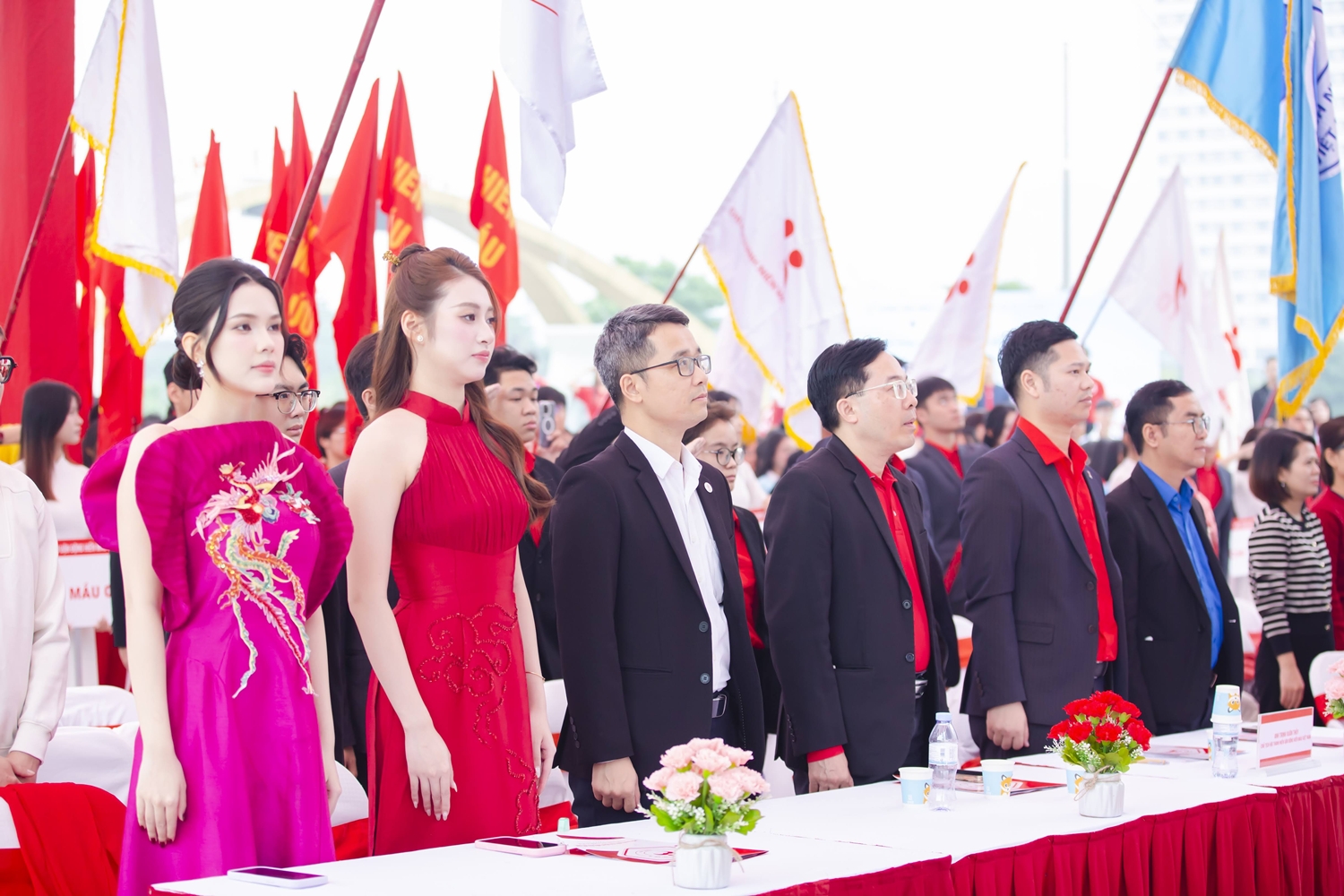 Các đại biểu thực hiện nghi lễ chào cờ.
