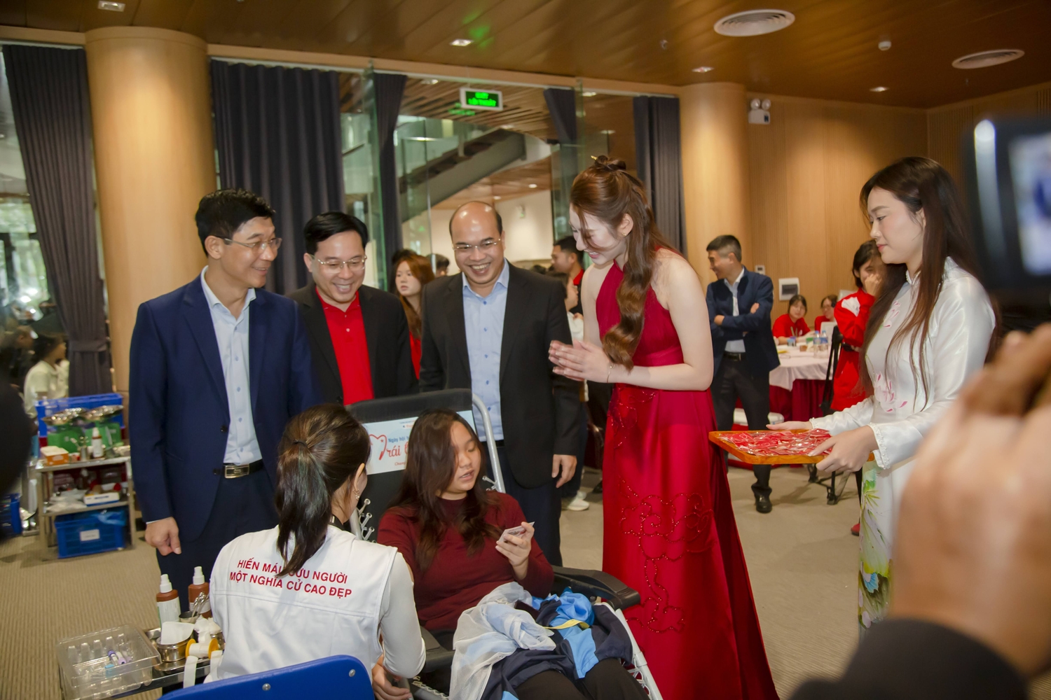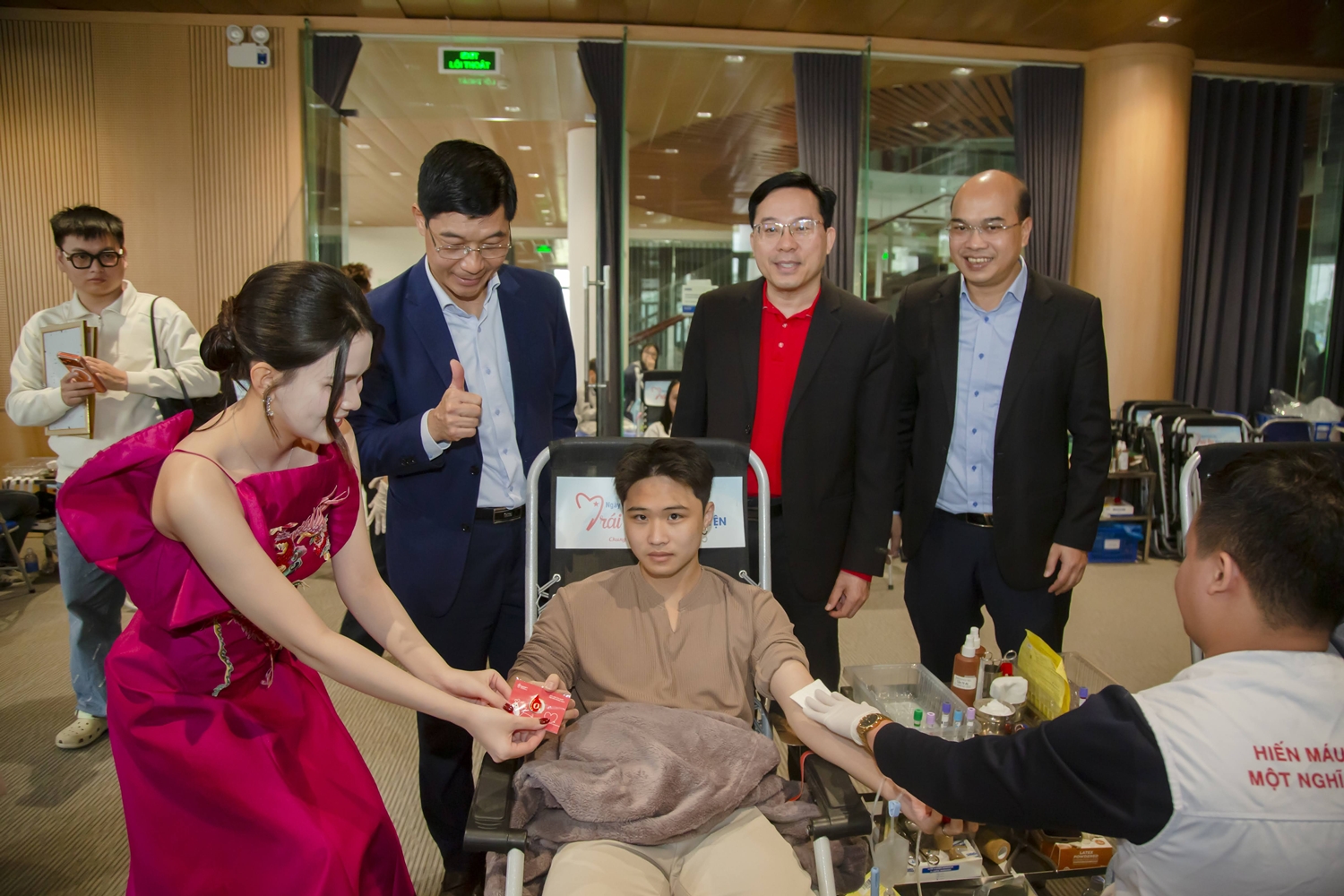 Các hoa hậu, á hậu thăm và tặng quà lưu niệm cho người hiến máu.