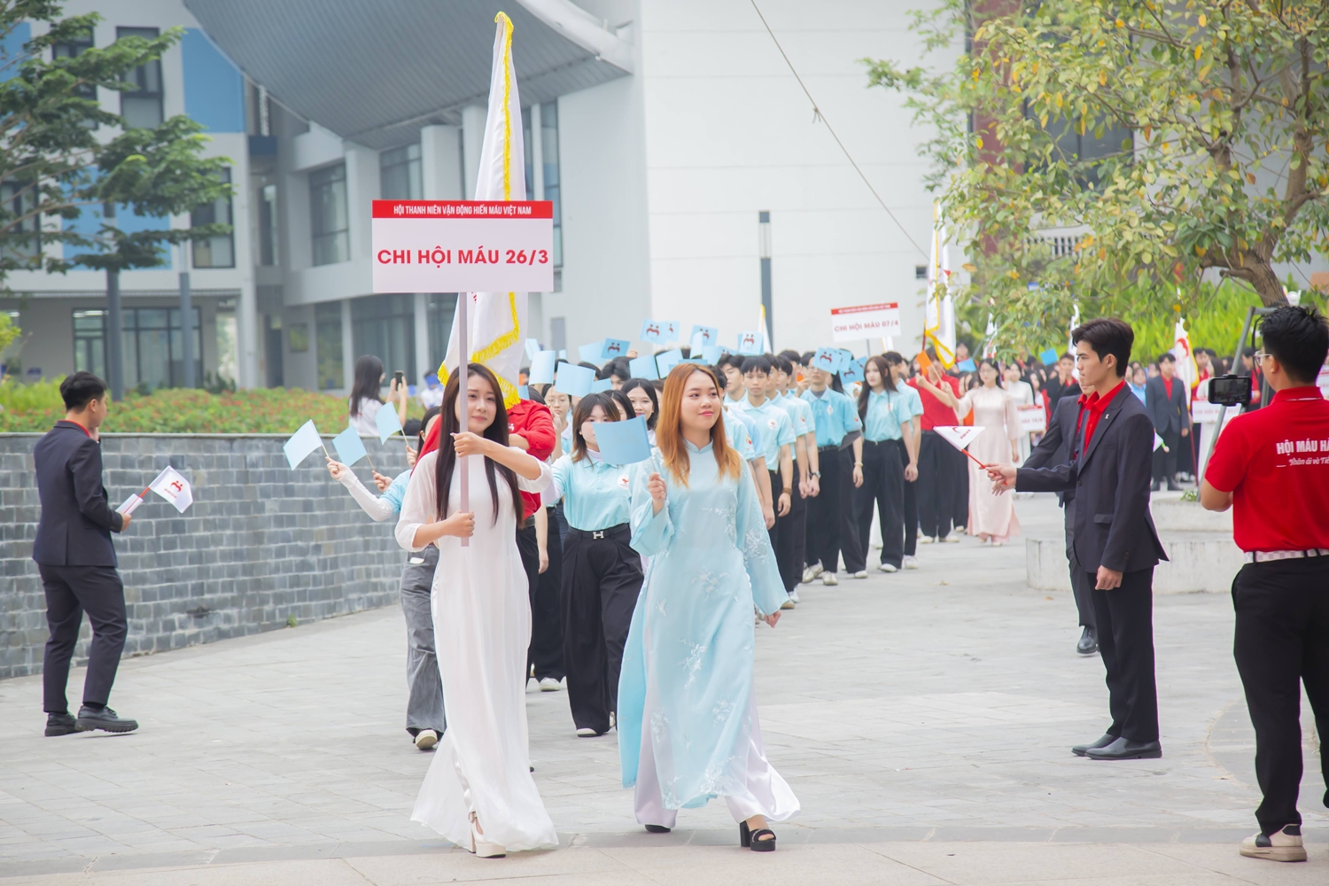 Tình nguyện viên Hội Thanh niên Vận động hiến máu Việt Nam diễu hành hưởng ứng ngày hội.